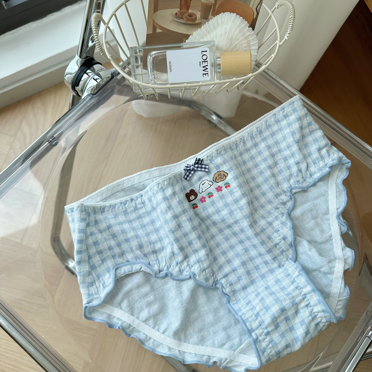N8057 통통녀 버블 격자 무늬 귀여운 소녀의 팬티 면 중간 낮은 허리 일본 달콤한 여자의 팬티스토어 가기