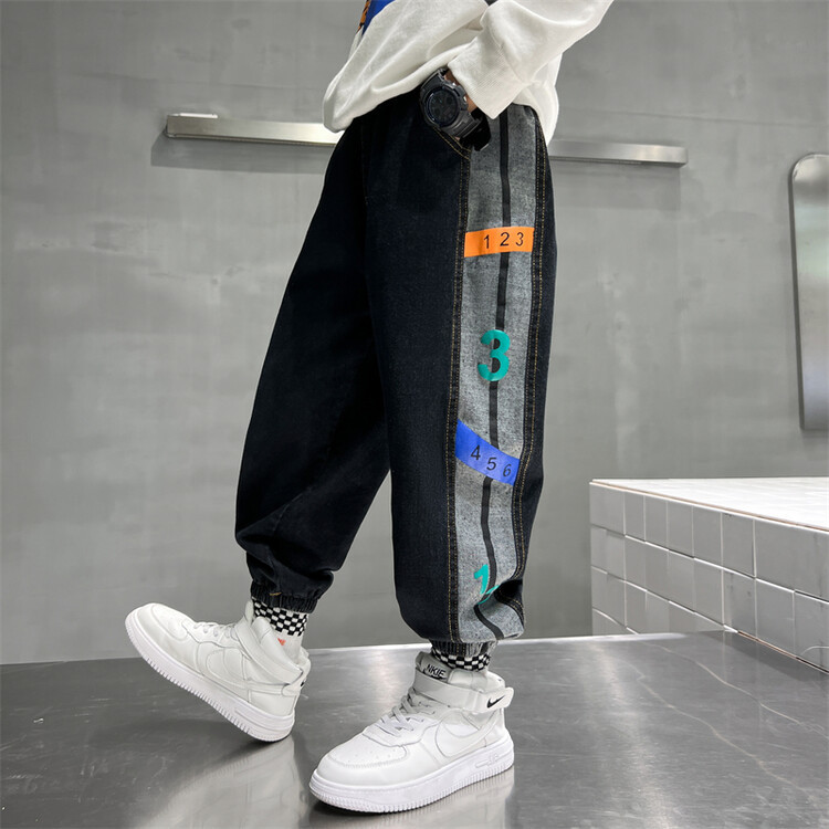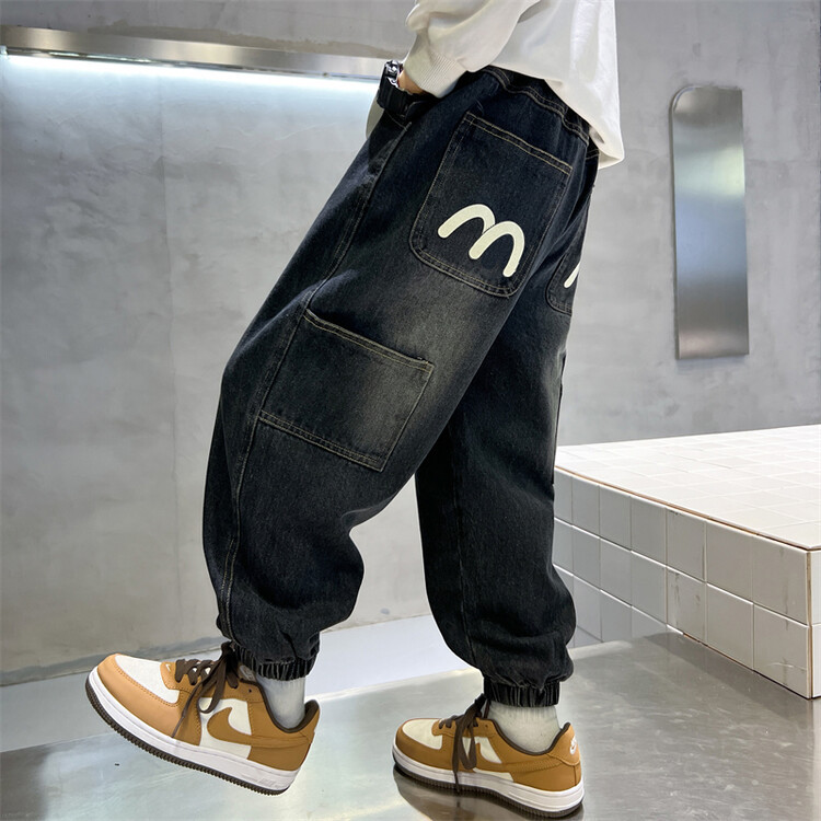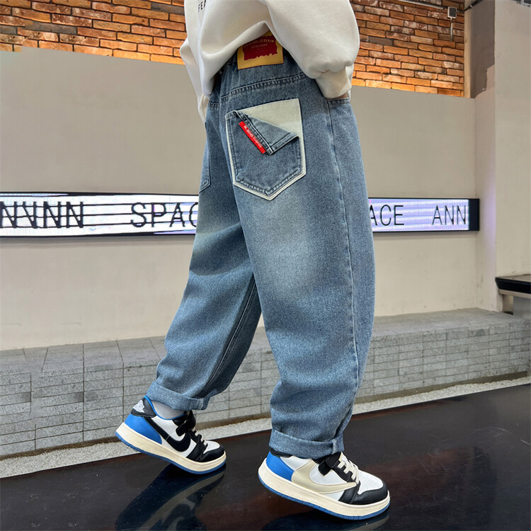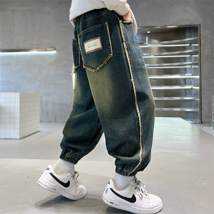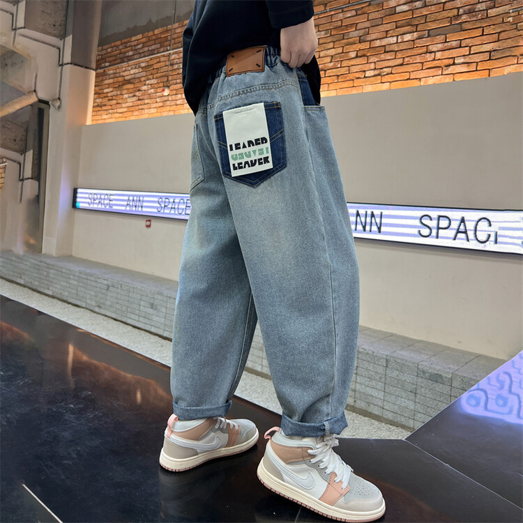 소년 바지 봄과 가을 2025 새로운 어린이 청바지 소년 가을 서양 스타일 편안한 유행 바지스토어 가기