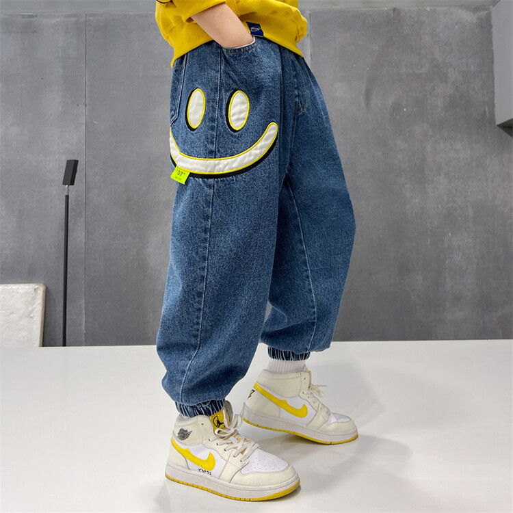 소년 바지 봄과 가을 2025 새로운 어린이 청바지 소년 가을 서양 스타일 편안한 유행 바지