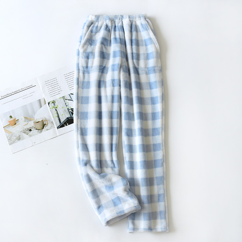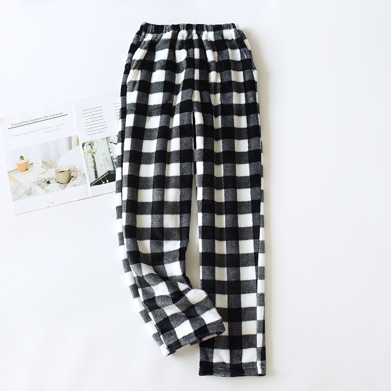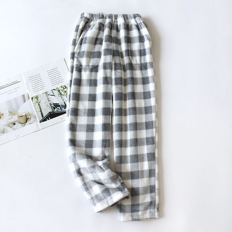 격자 무늬 커플 파자마 바지 플란넬 따뜻한 바지 두꺼운 산호 양털을 플러스 사이즈 겨울 겉옷 홈 팬츠