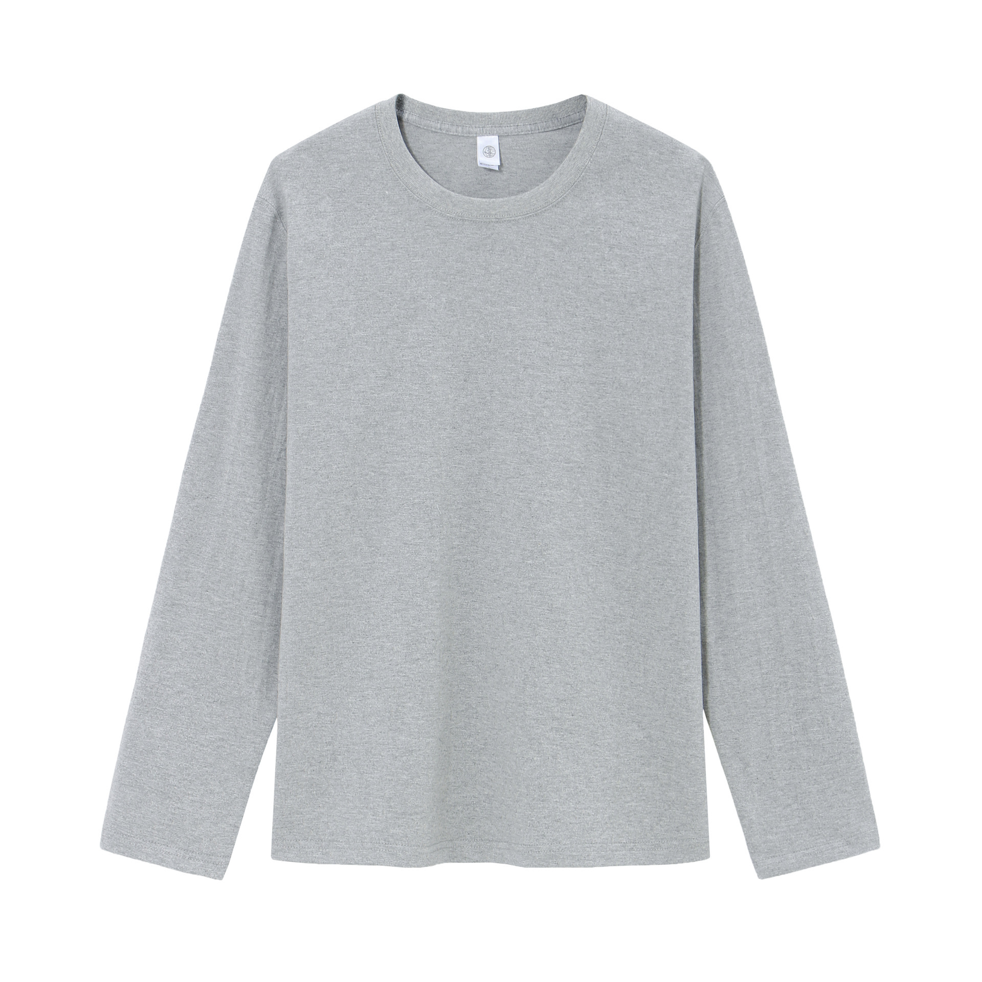 270g 긴팔 티셔츠 남성용 순면 두꺼운 루즈핏 단색 흰색 봄 가을 스웨트셔츠 일본 스타일 라운드넥 이너웨어 트렌디 브랜드