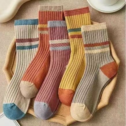 • 여성용 종아리 중간 부분 색상 분리 여성용 양말