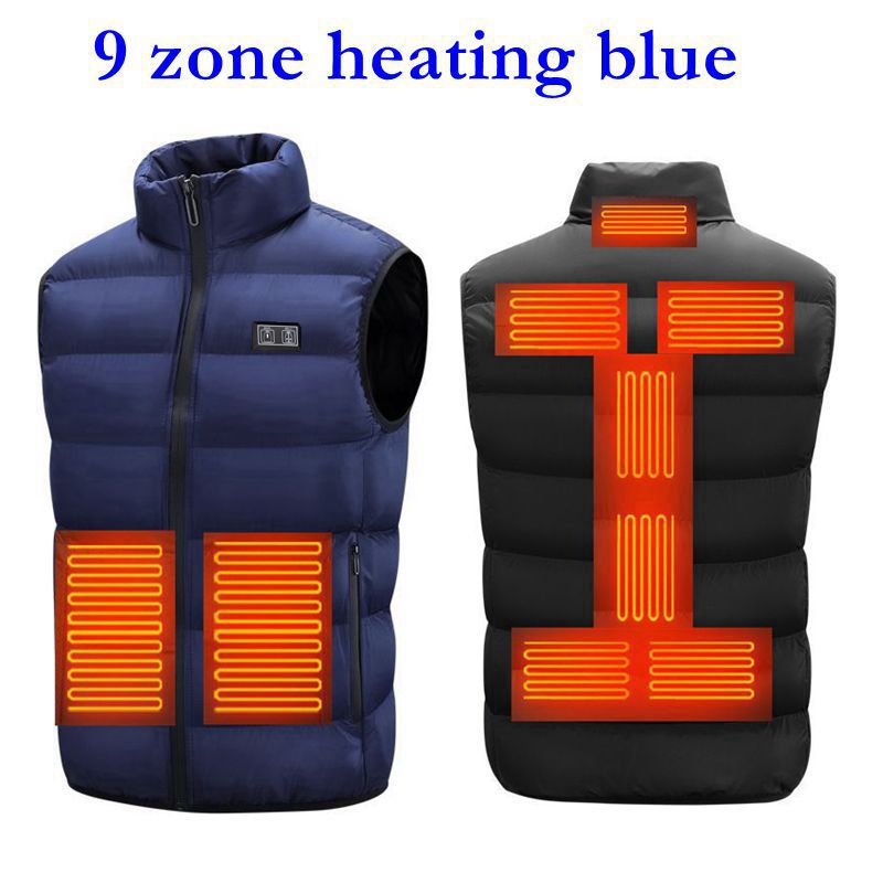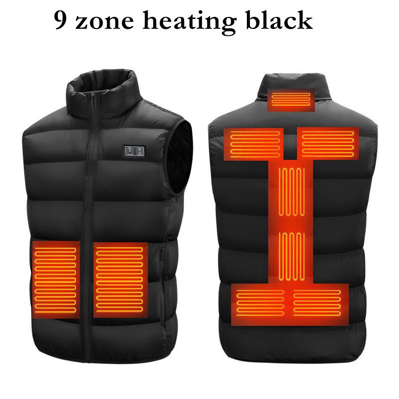 더블 스위치 남자의 칼라 두꺼운 9 조각 난방 조끼 돌 얇은 잉크 USB 난방 조끼 플러스 사이즈 캐주얼 조끼스토어 가기