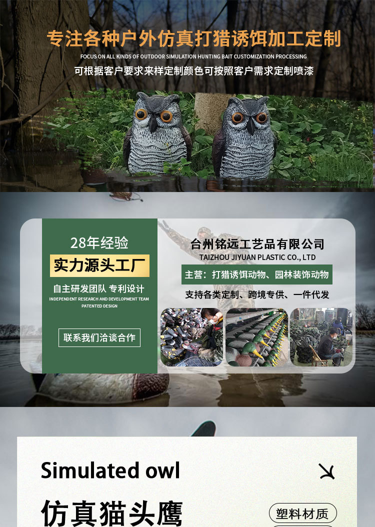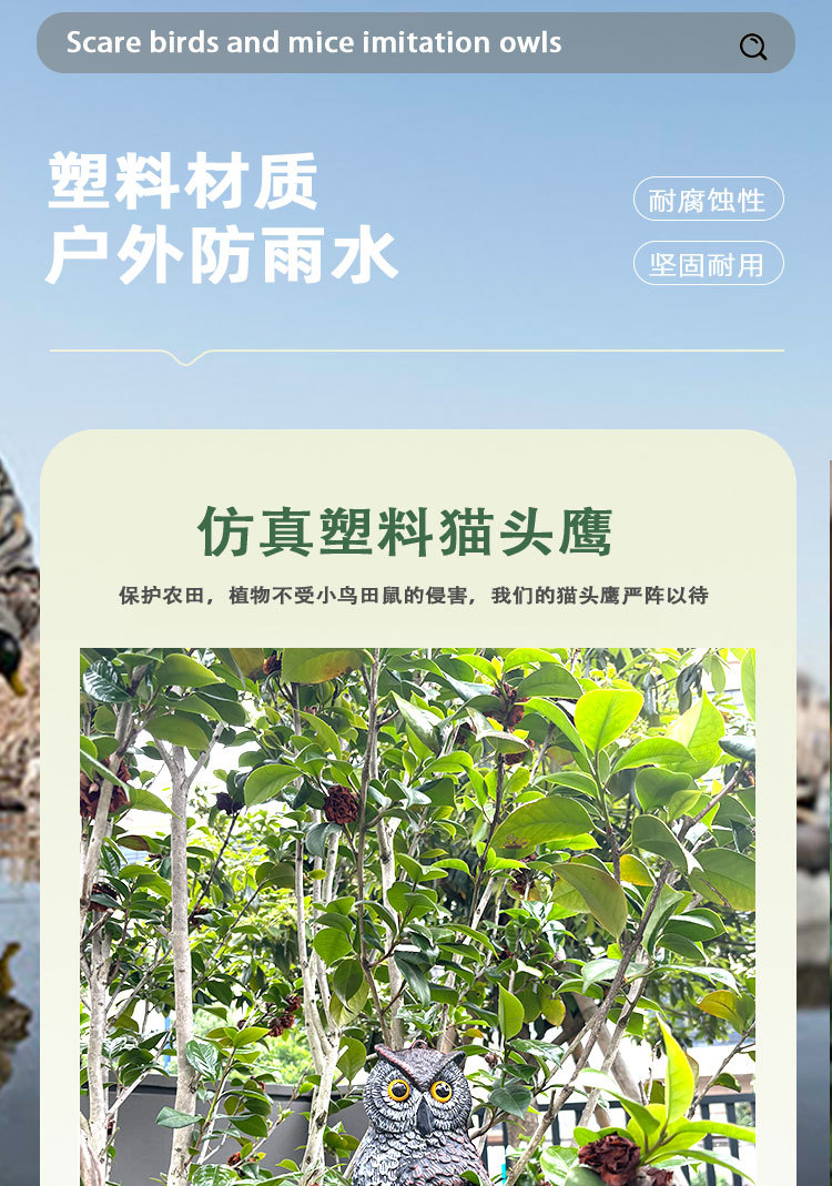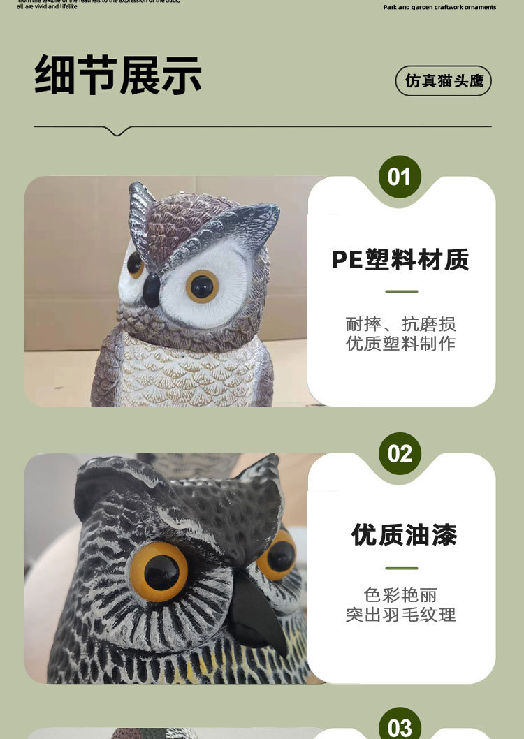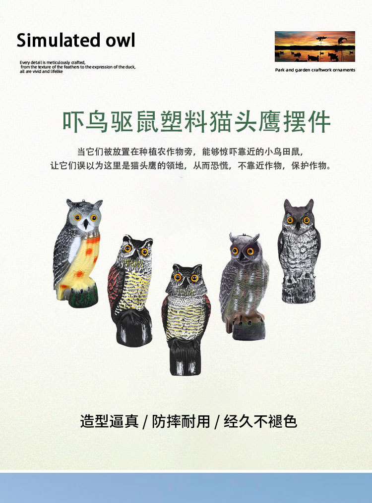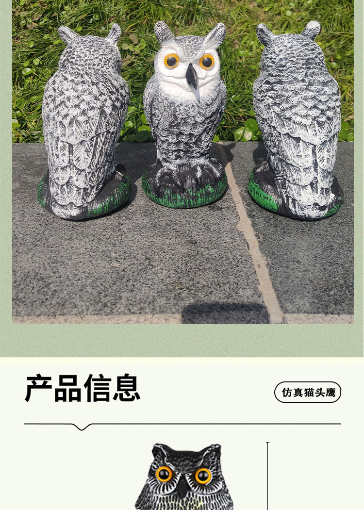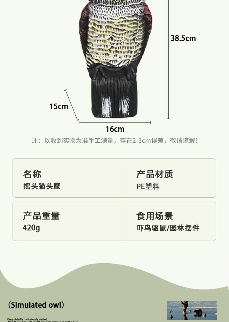 국경 간 무역 정원 장식품, 새와 쥐를 쫓는 장치, 모조 올빼미 장식품, PE 가짜 새, 흔들리는 머리 올빼미 장식