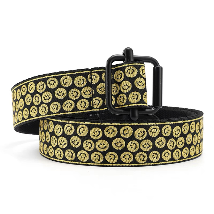 WASSUP 천 벨트 가죽 가을 겨울 바지 벨트 브레이드 스마일리 페이스 디자인 창의적인 무공 구멍 없는 캔버스 트렌디 브랜드 벨트 직판매스토어 가기