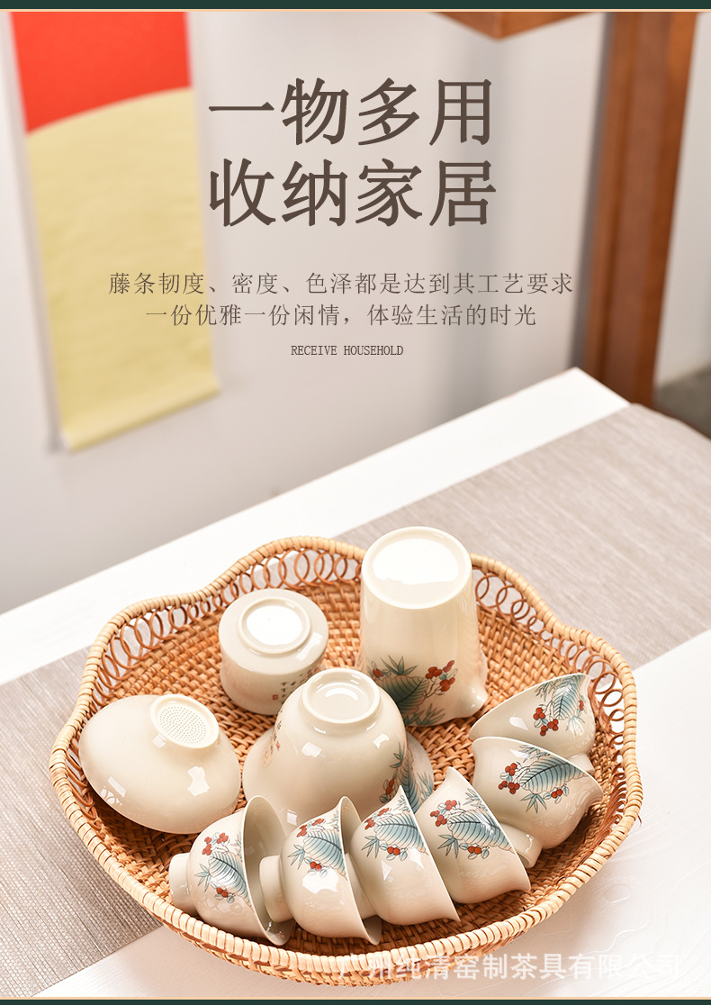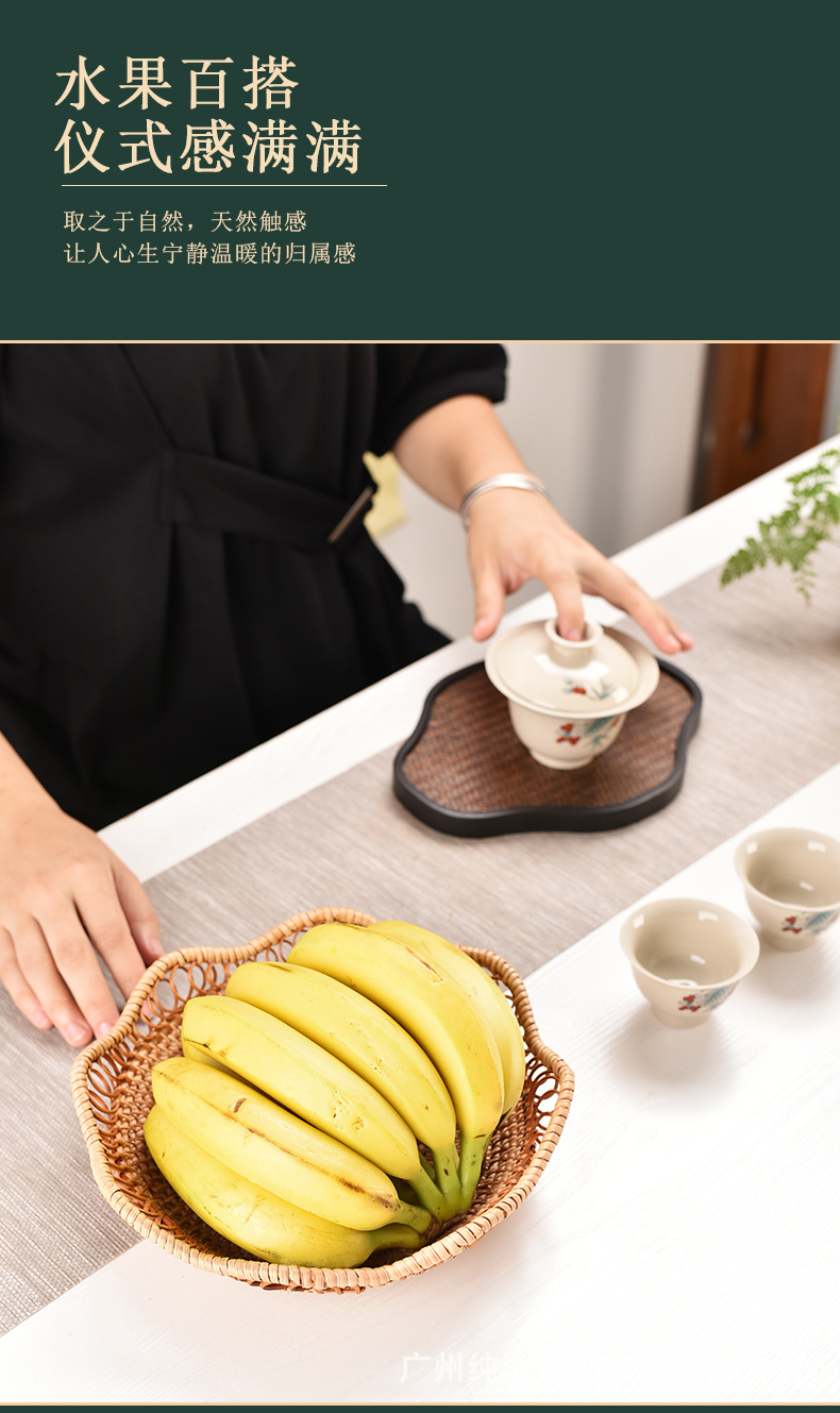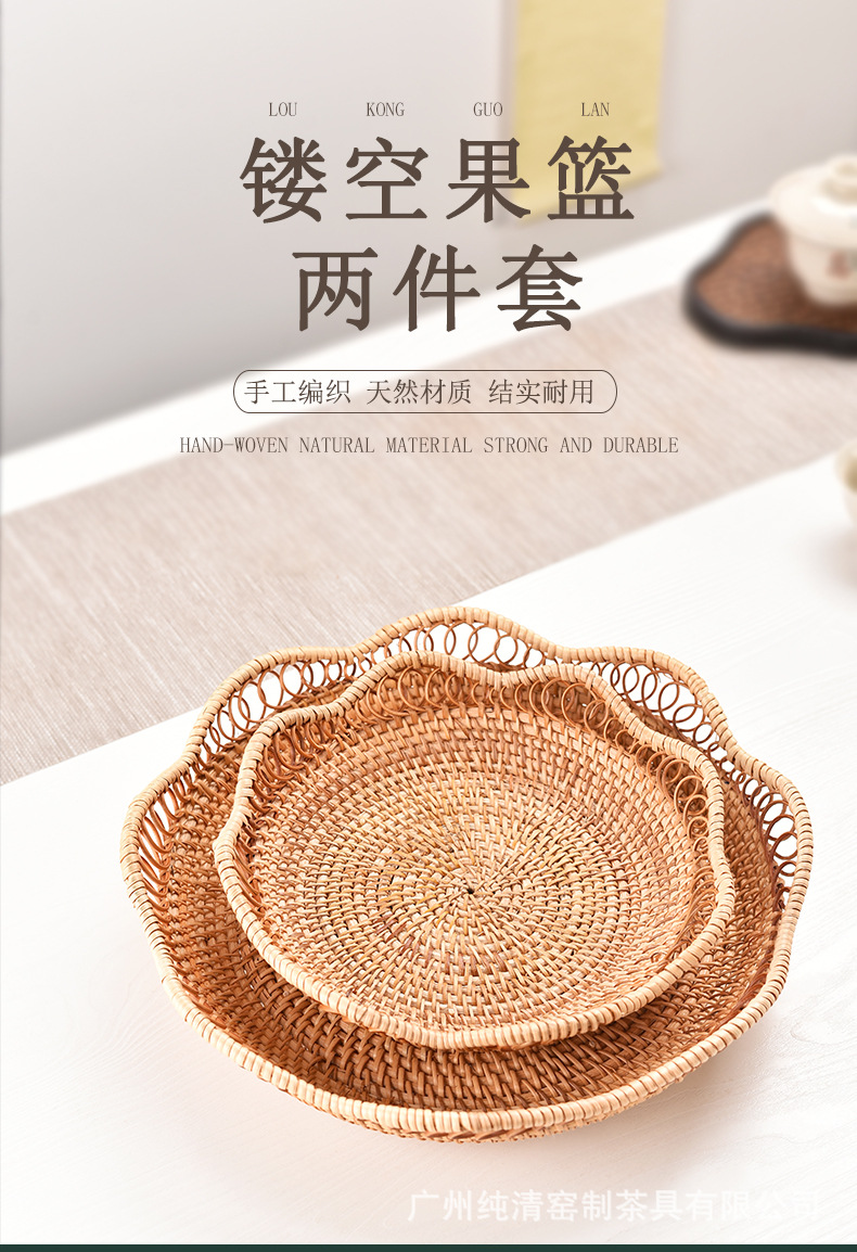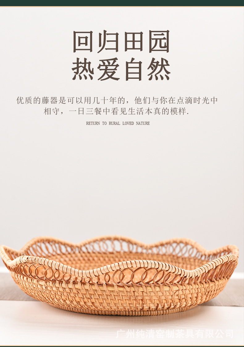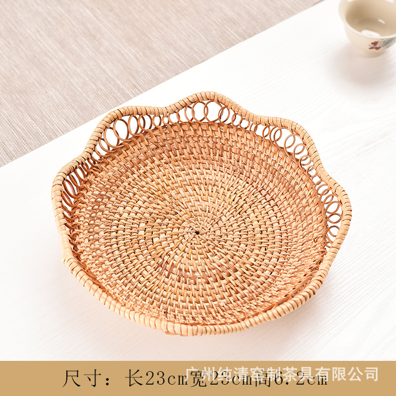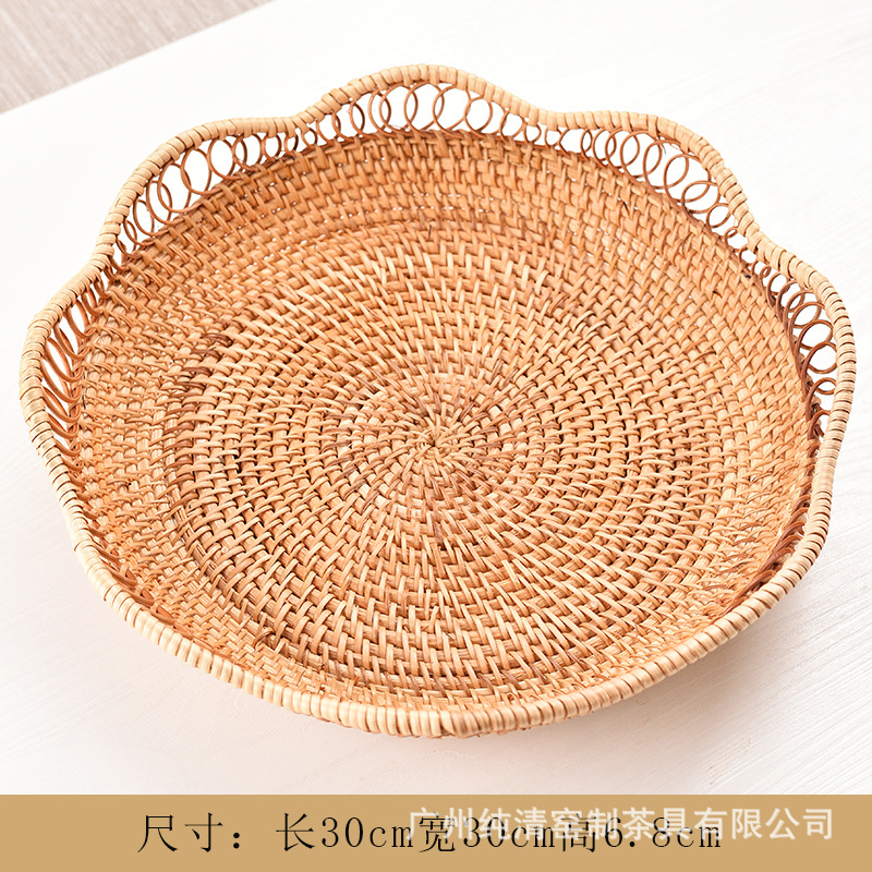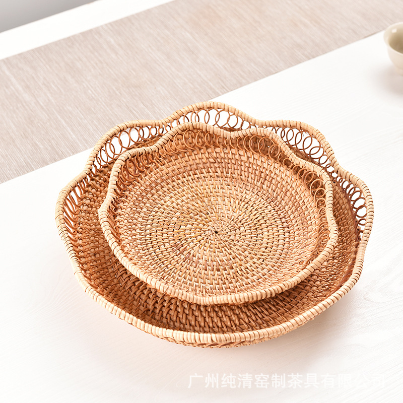 베트남 가을 덩굴나무 수공예 빈티지 원형 과일 바구니, 쿠키/과일/채소 보관 바구니, 수납 바구니, 티 테이블 과일 접시 바구니