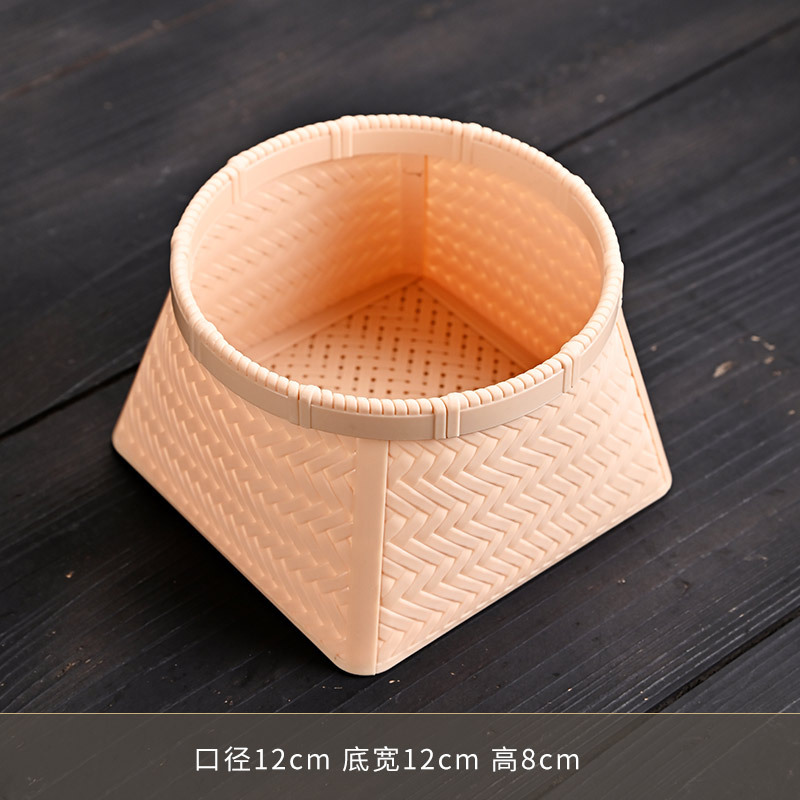 • 플라스틱 대나무 스타일 수납 바구니 - 미색