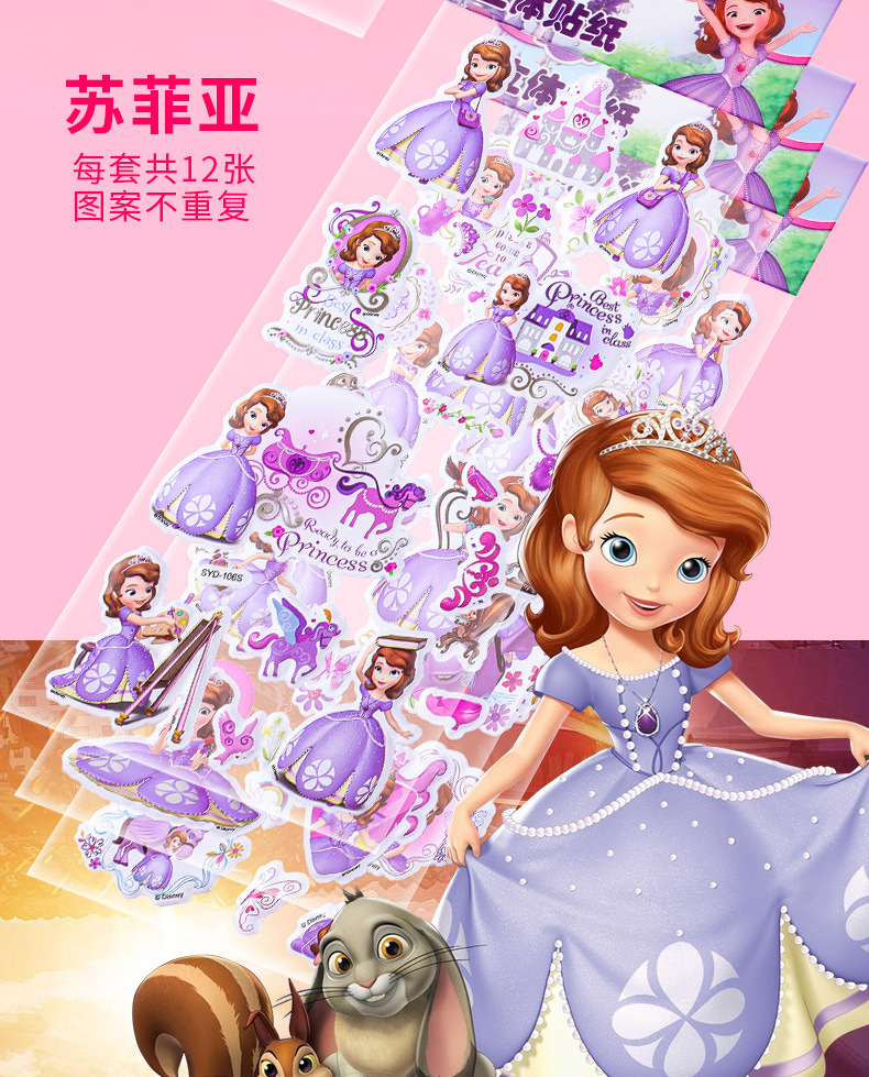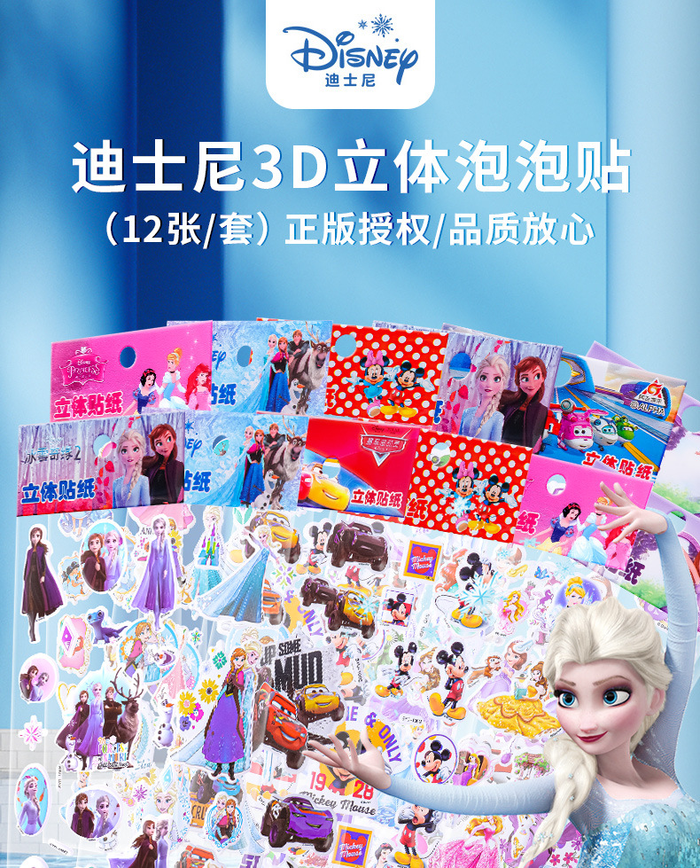디즈니 어린이 버블 스티커 3D 공주 스티커 스티커 크리 에이 티브 입체 스티커 장난감 보상 스티커 종이스토어 가기