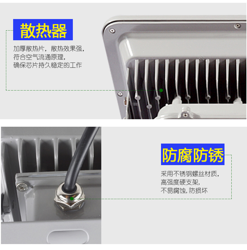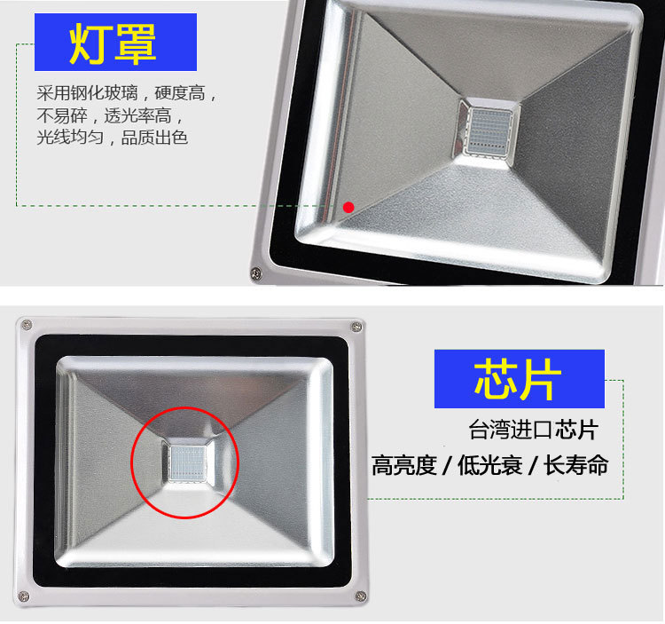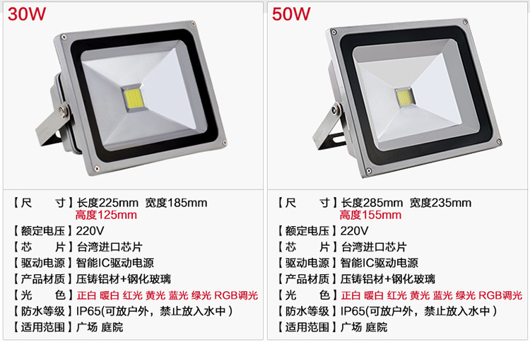 工程款为厚料铝灯体,铝面框,铝后盖,单色足瓦,七彩变色为芯片发光(光色更纯正),3年保修。