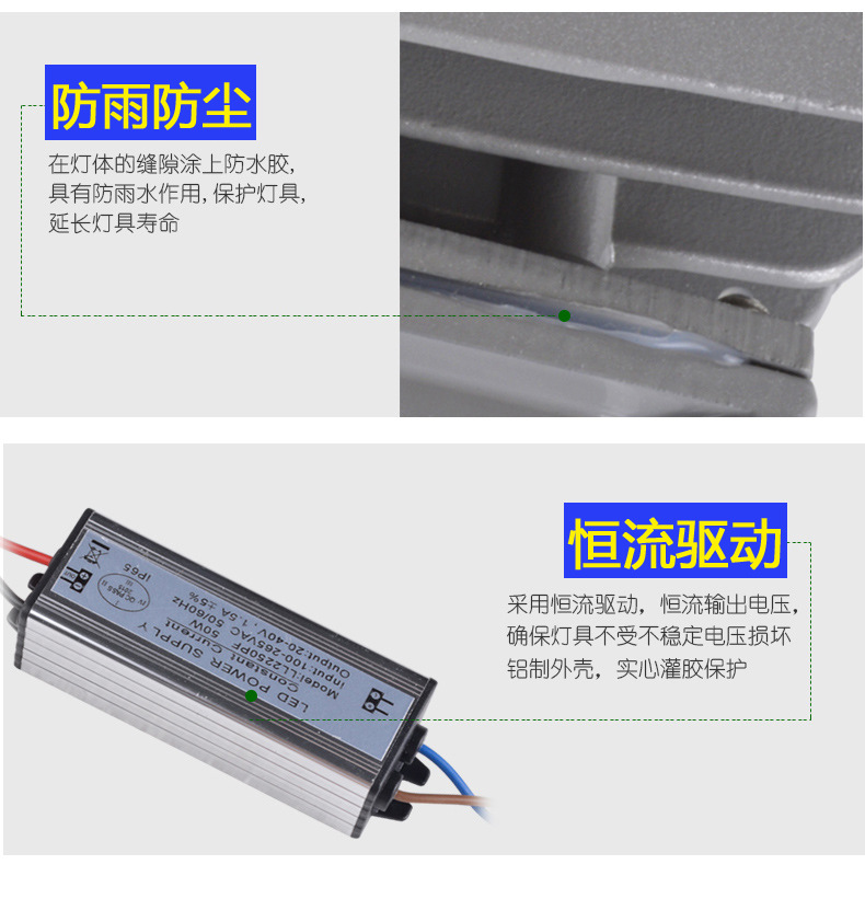 豪华款为铝灯体,铁面框,铁后盖,2年保修。
