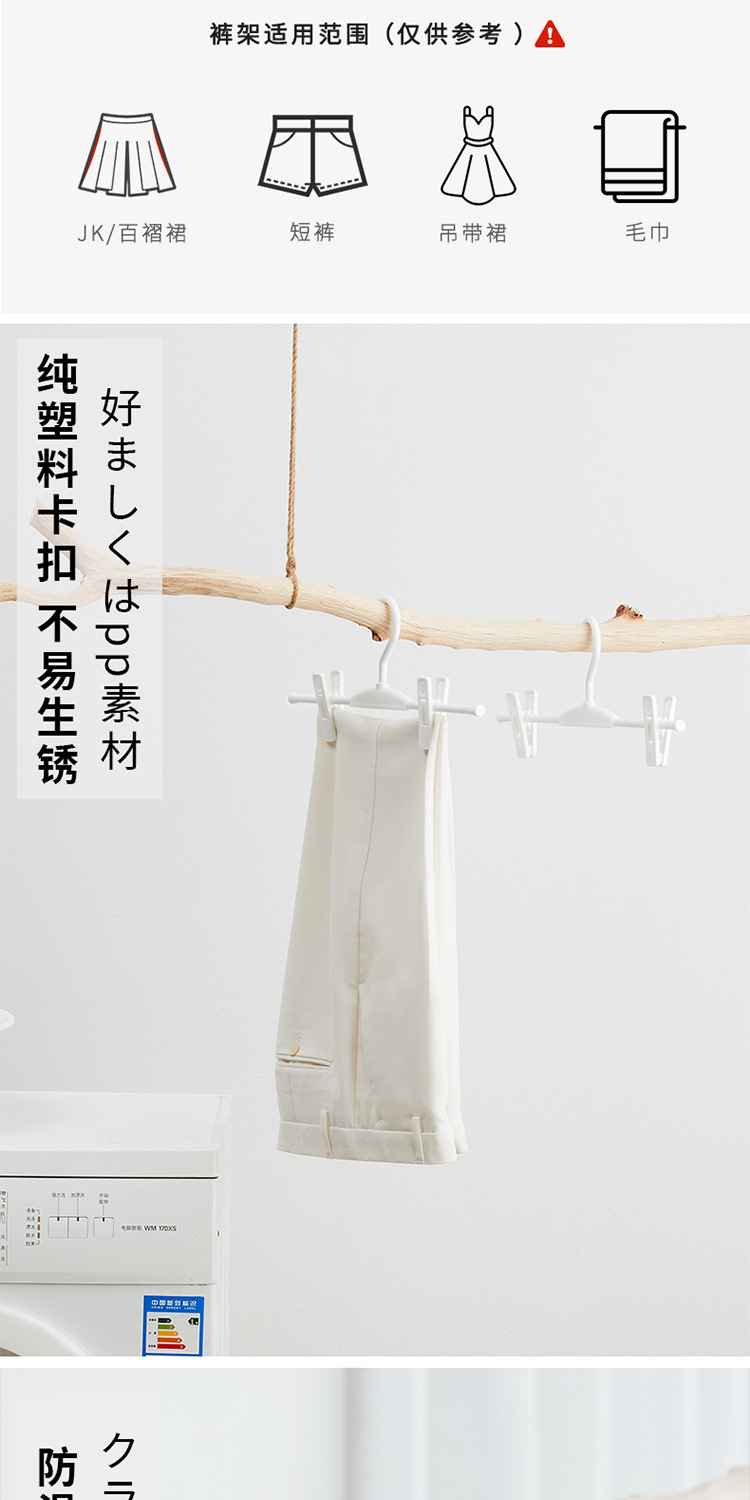 일본 JSK 미끄럼 방지 플라스틱 걸이 바지 랙 바지 클립 스커트 클립 내부 걸이 바지 클립 건조 옷 걸이 의류스토어 가기