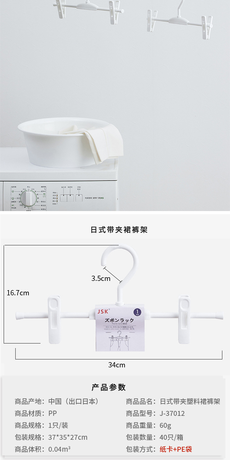 일본 JSK 미끄럼 방지 플라스틱 걸이 바지 랙 바지 클립 스커트 클립 내부 걸이 바지 클립 건조 옷 걸이 의류