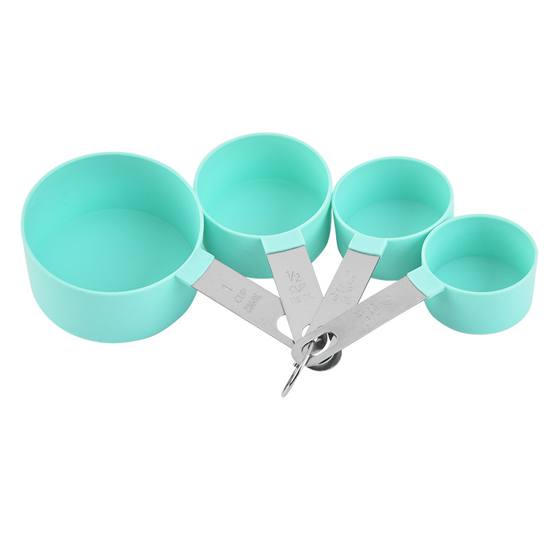 재고 베이킹 도구 플라스틱 계량 컵 스케일 조미료 측정 스푼 4 개 세트 스테인레스 스틸 핸들 측정 스푼 측정 컵 8 개 세트스토어 가기