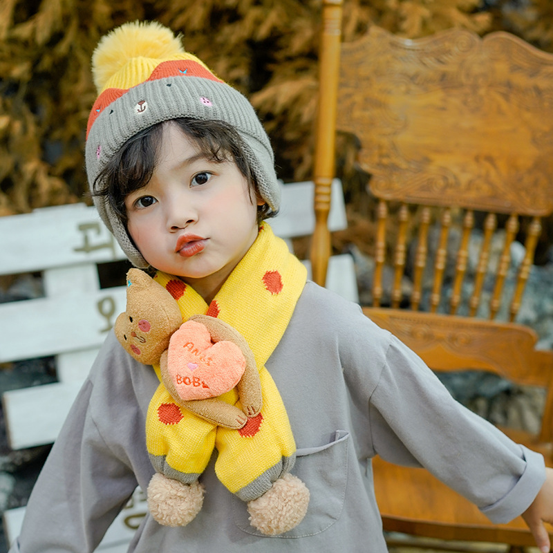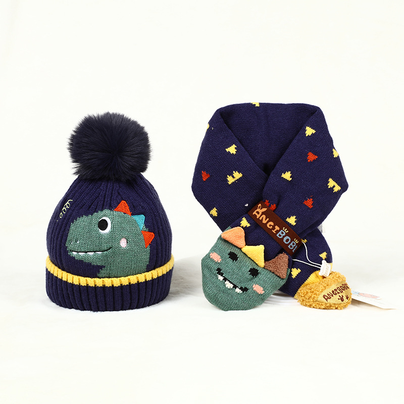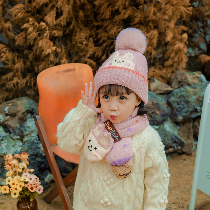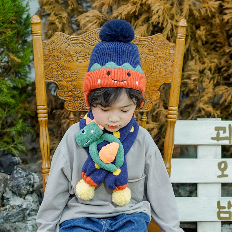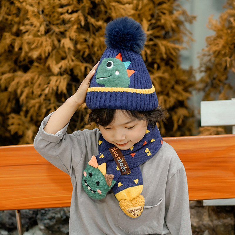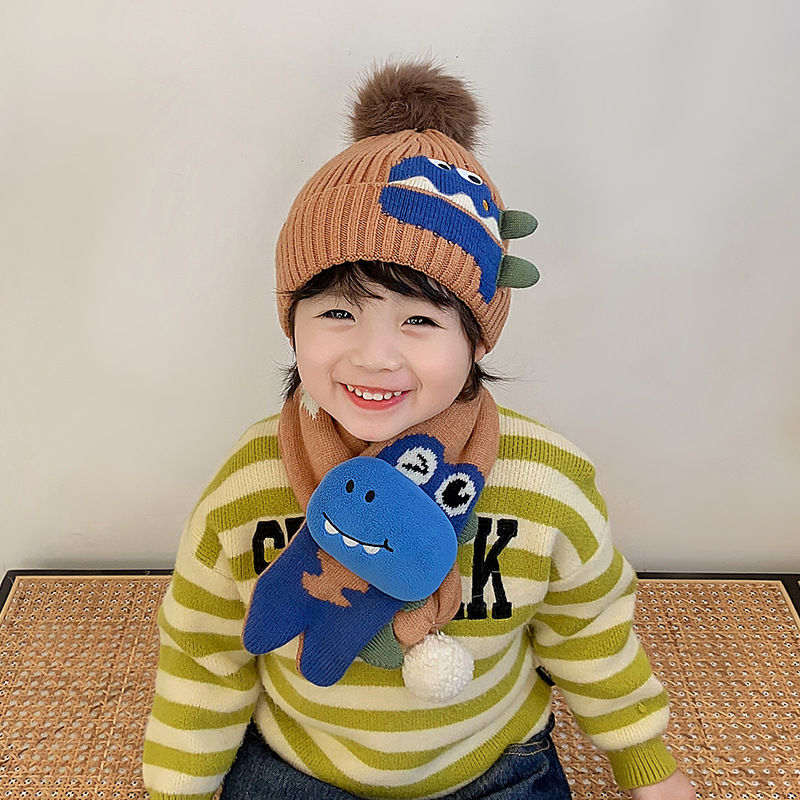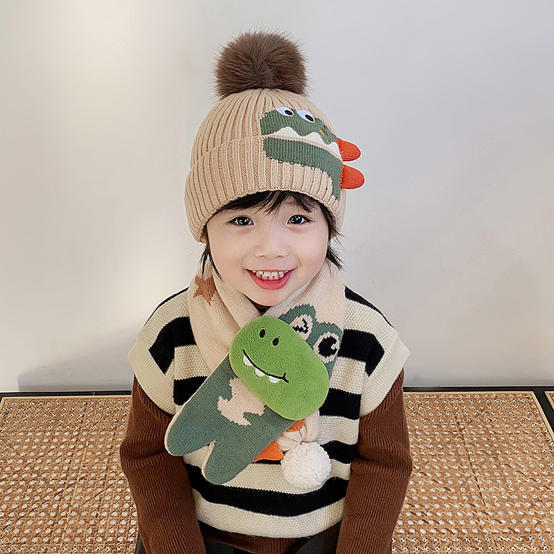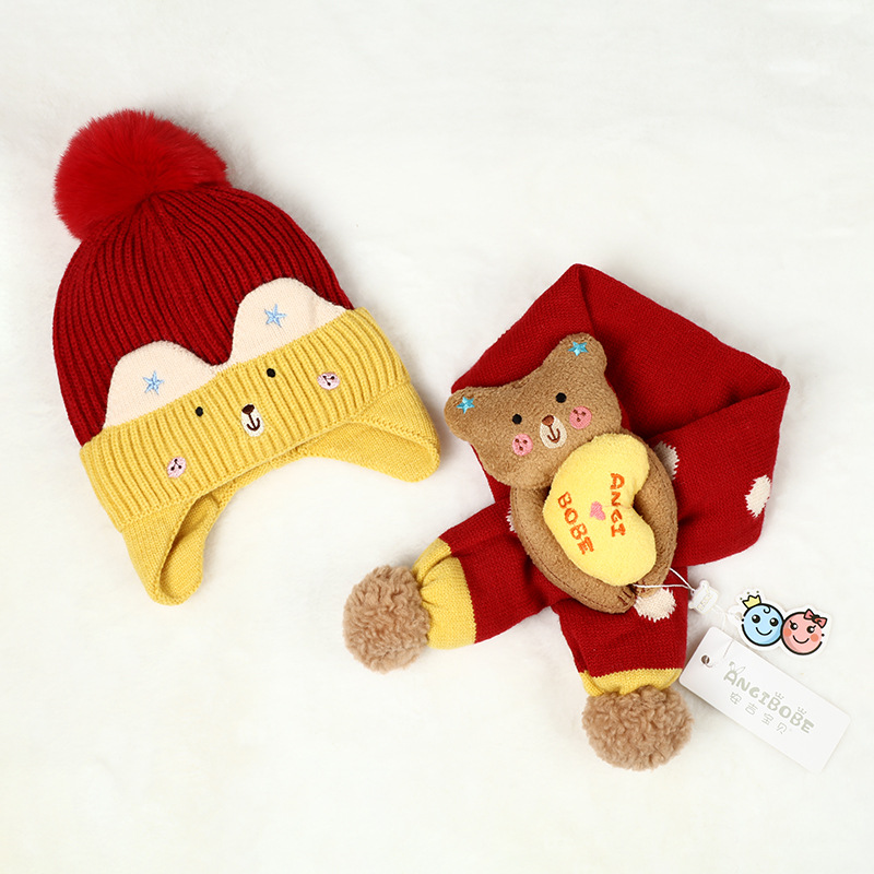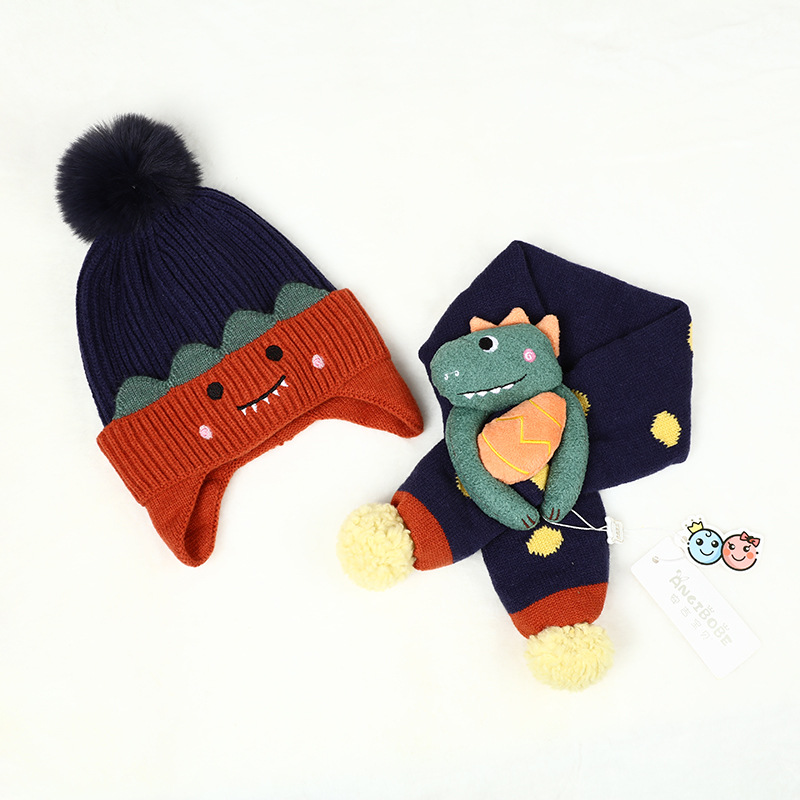 Anji 아기 아기 어린이 양모 모자 세트 만화 작은 동물 따뜻한 컬링 유행 니트 모직 모자스토어 가기