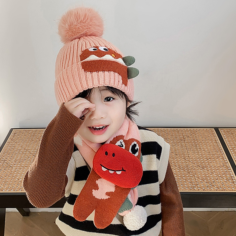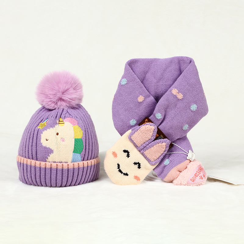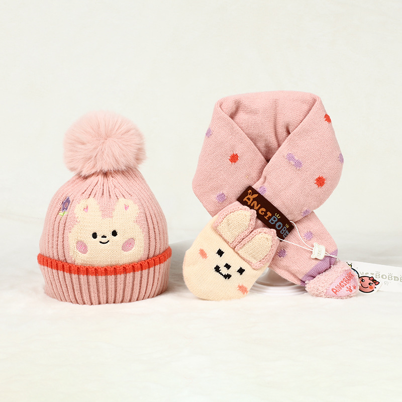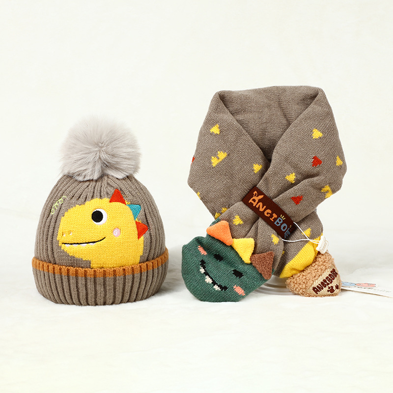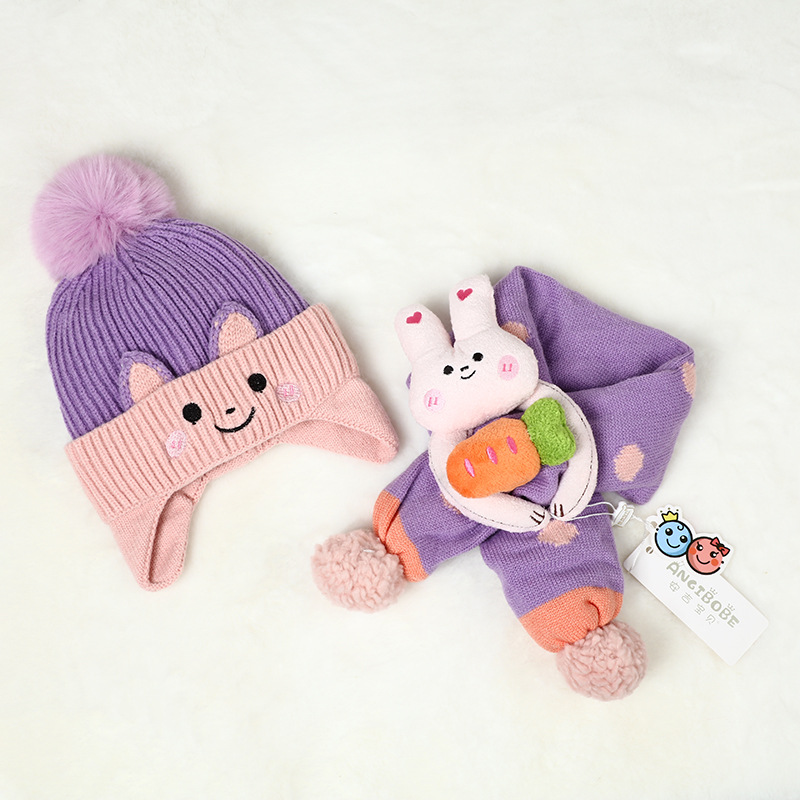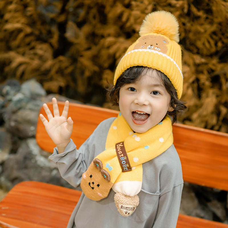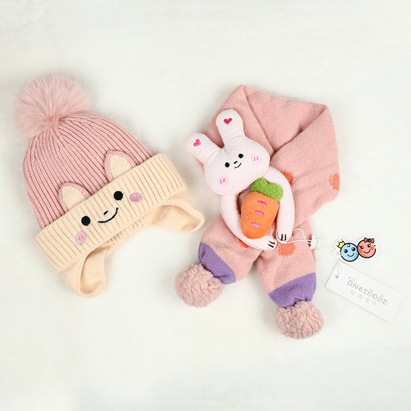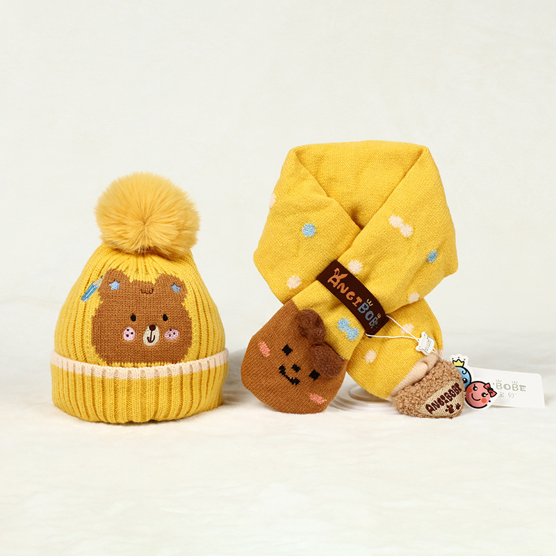 Anji 아기 아기 어린이 양모 모자 세트 만화 작은 동물 따뜻한 컬링 유행 니트 모직 모자