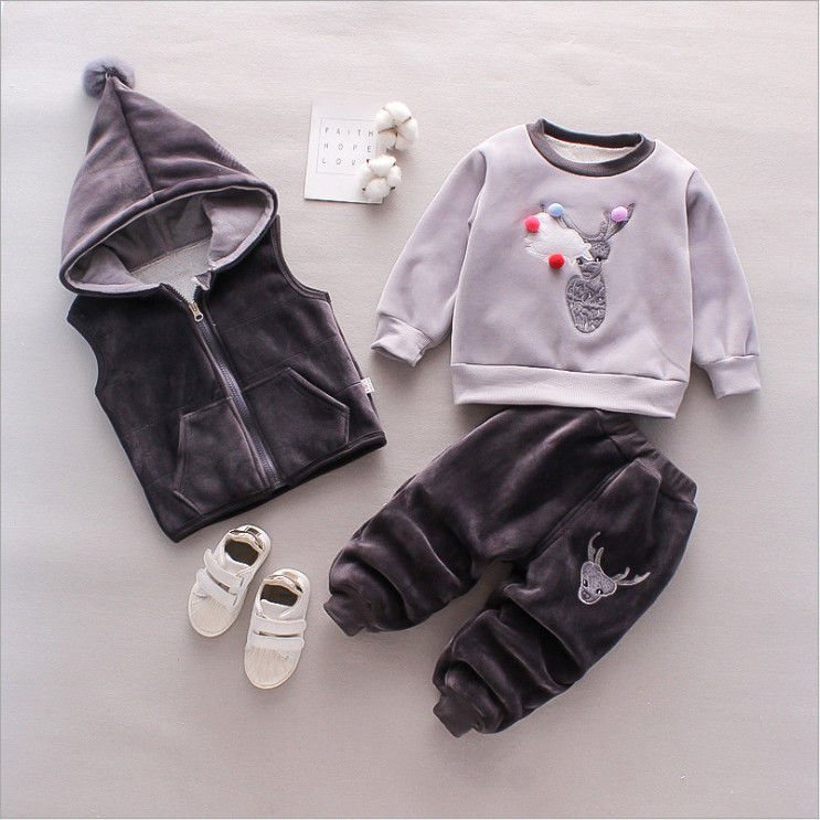 2021 가을/겨울 새로운 소년 소녀 아기 기모 두꺼운 스웨터 세트 어린이 가을/겨울 기모 3 종 세트스토어 가기