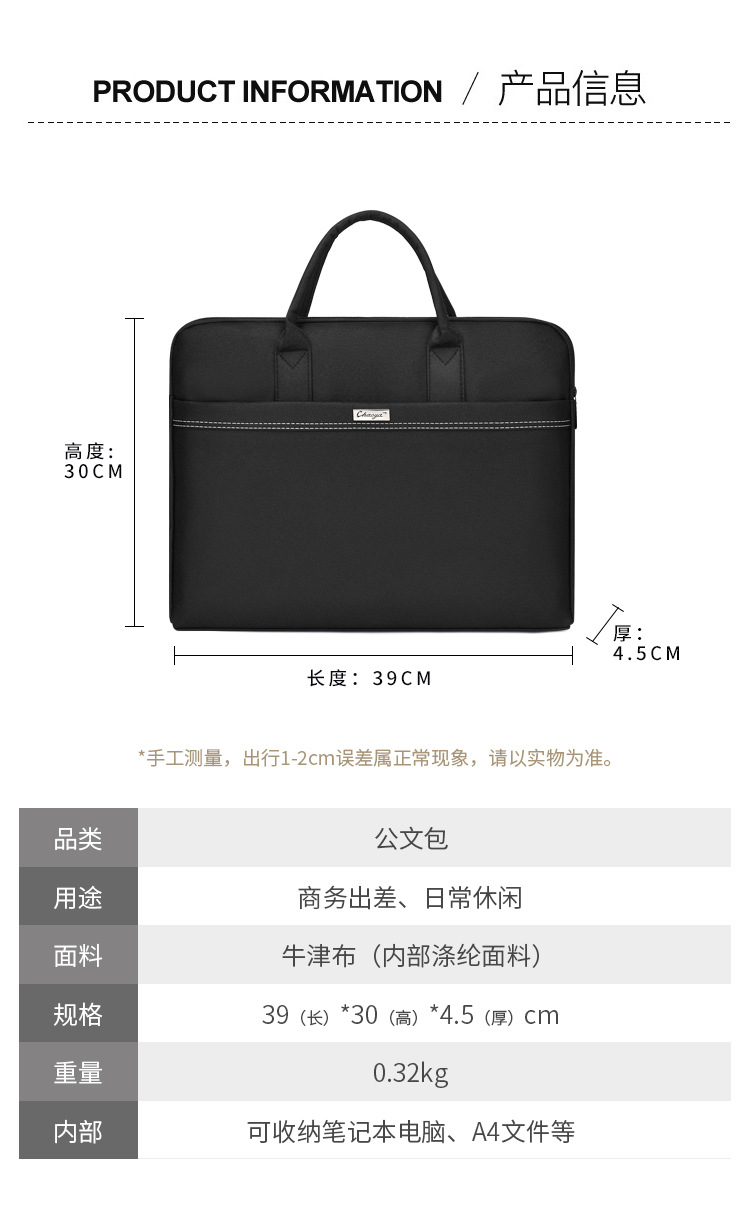 두꺼운 스폰지 옥스포드 천 핸드백 인쇄 가능한 로고 대용량 서류 가방 회의 컴퓨터 가방