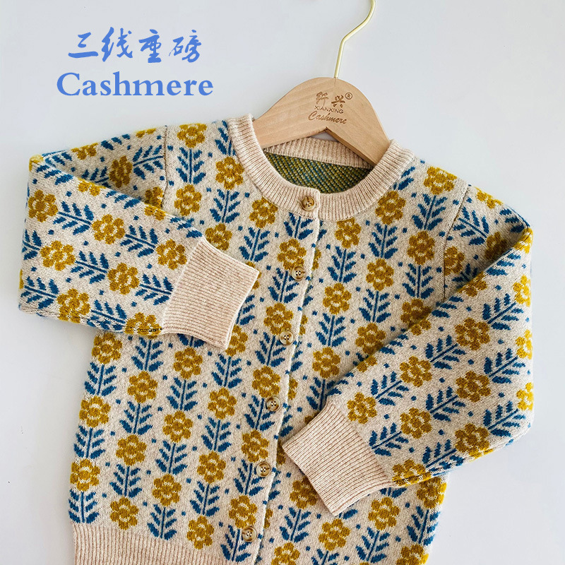 내몽골 펭보 캐시미어 어린이 캐시미어 스웨터 3 라인 헤비급 영국 복고풍 부모-어린이 소녀 카디건 긴 소매스토어 가기