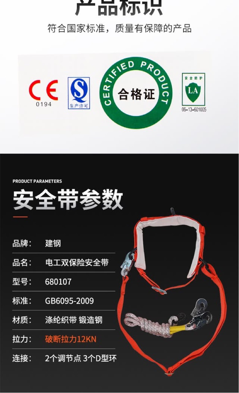Jiangang 680107 전기 기사 벨트 단일 벨트 안전 벨트 화재 안전 벨트 고공 작업 벨트