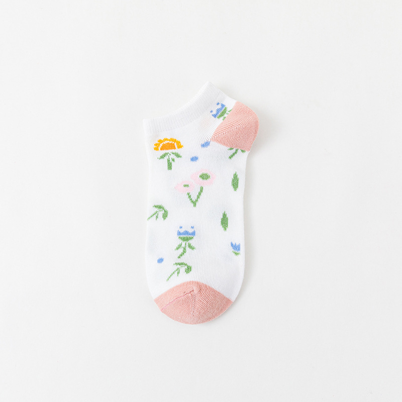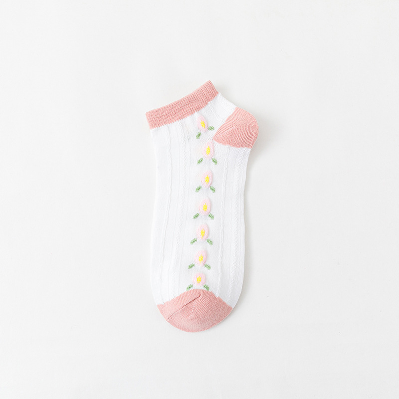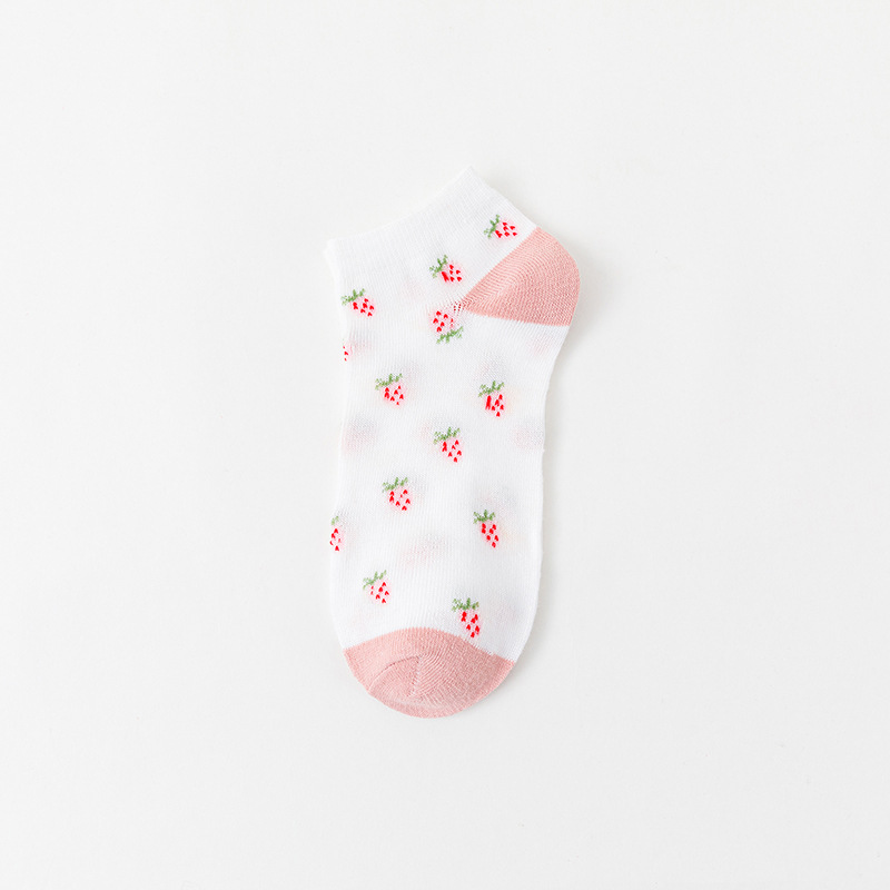 봄과 여름 얇은 일본 양말 어린이 달콤한 줄무늬 딸기 핑크 보트 양말 짧은 양말 귀여운 학생 낮은 양말