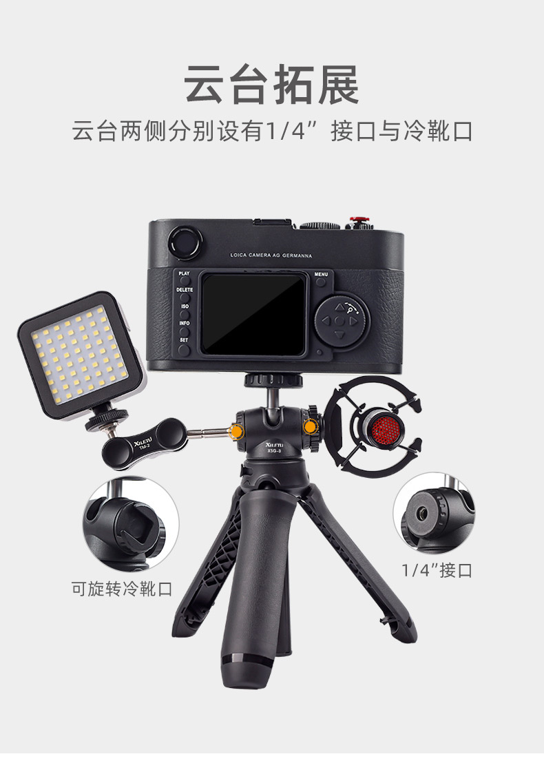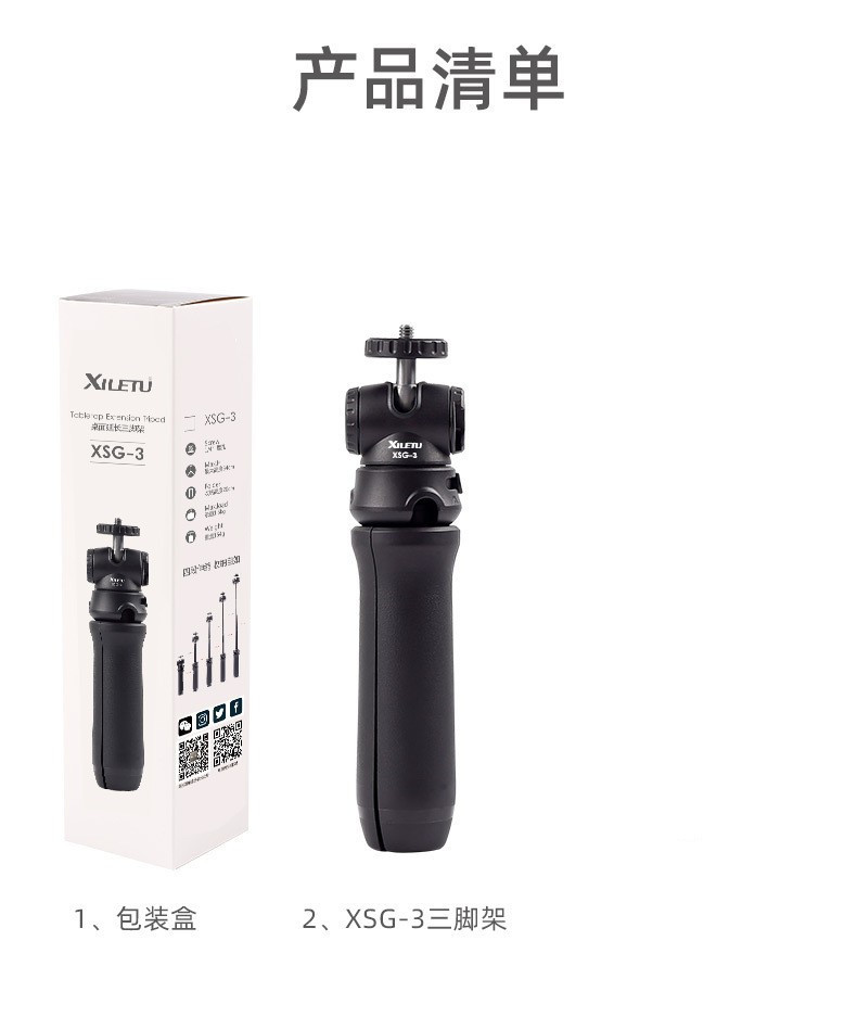 Xiletu 데스크탑 확장로드 콜드 부츠 삼각대 휴대용 미니 단일 카메라 휴대 전화 사진 라이브 방송 휴대용 브래킷스토어 가기