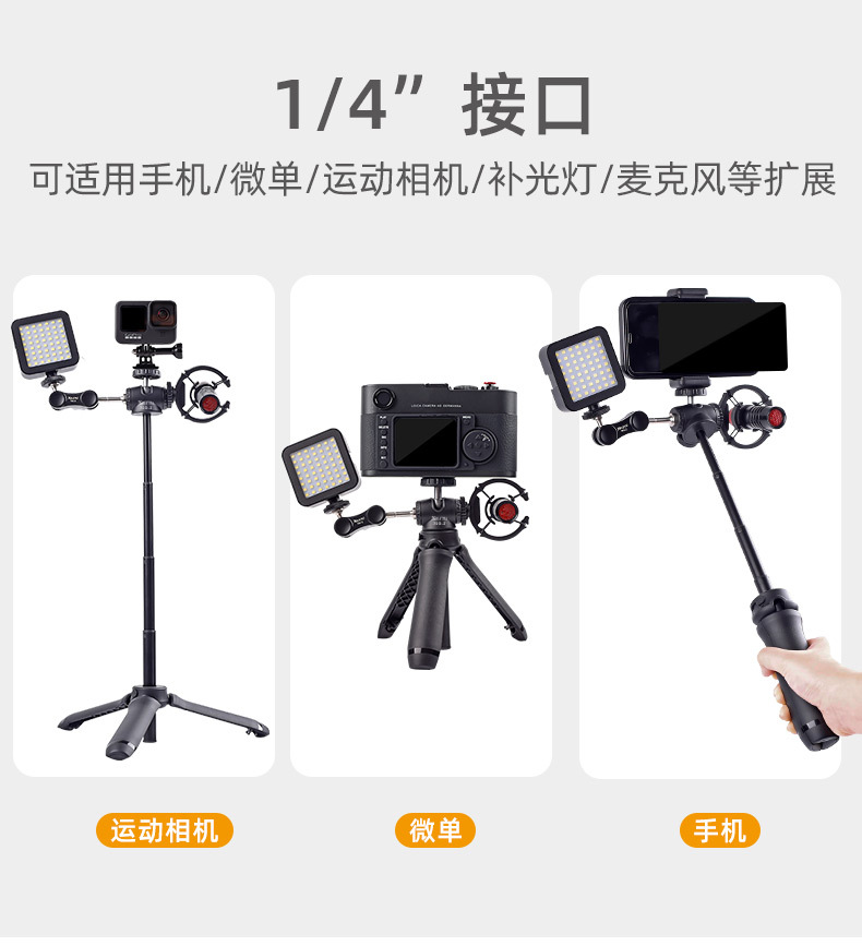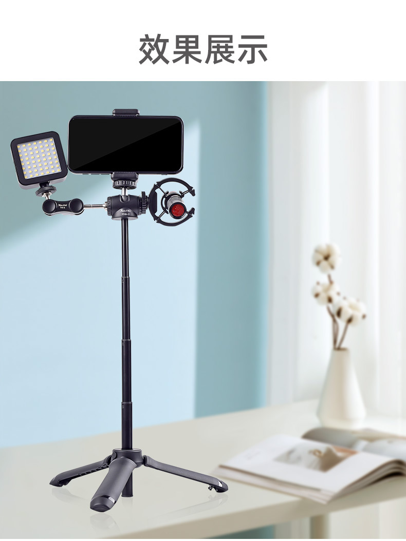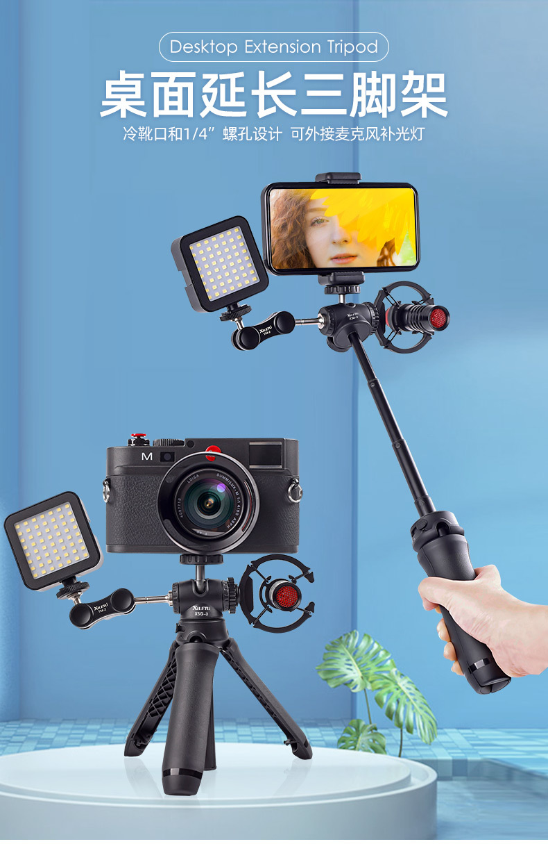 Xiletu 데스크탑 확장로드 콜드 부츠 삼각대 휴대용 미니 단일 카메라 휴대 전화 사진 라이브 방송 휴대용 브래킷