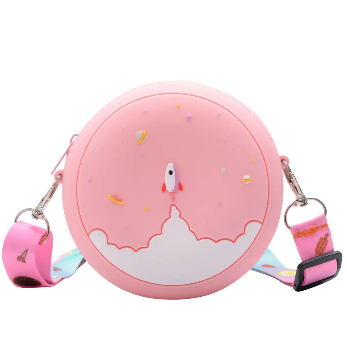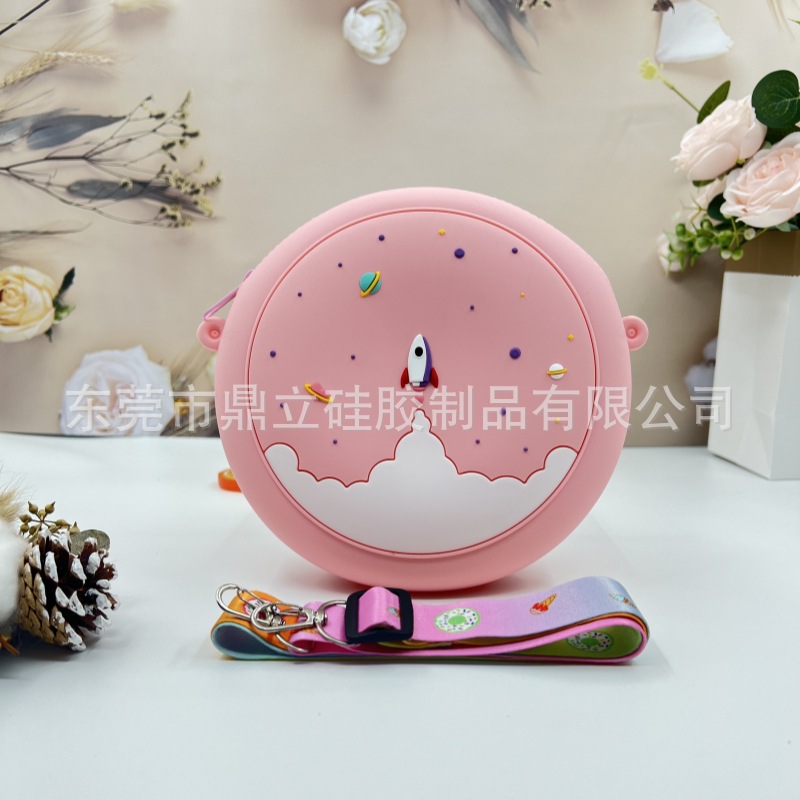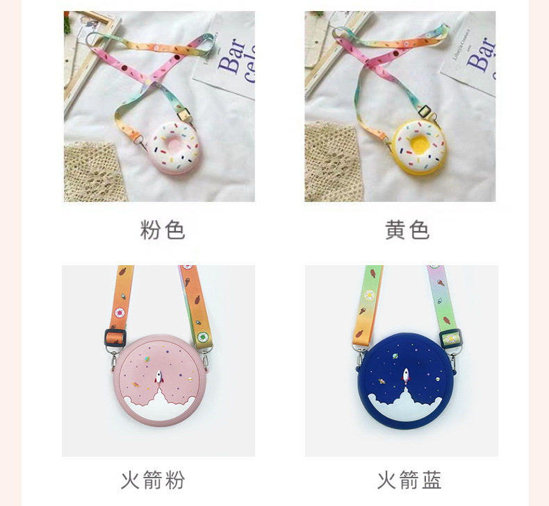 新款甜甜圈儿童包包外出斜挎包钱包迷你单肩斜挎硅胶包女可爱包