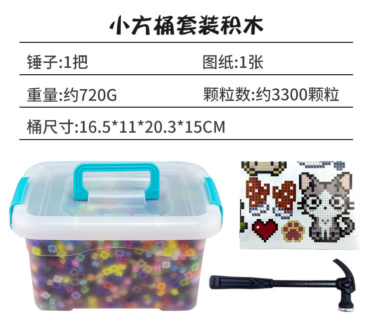 노점 야시장 대외 무역 공급 8mm 작은 입자 빌딩 블록 작은 사각형 배럴 약 3300 개 액세서리 세트