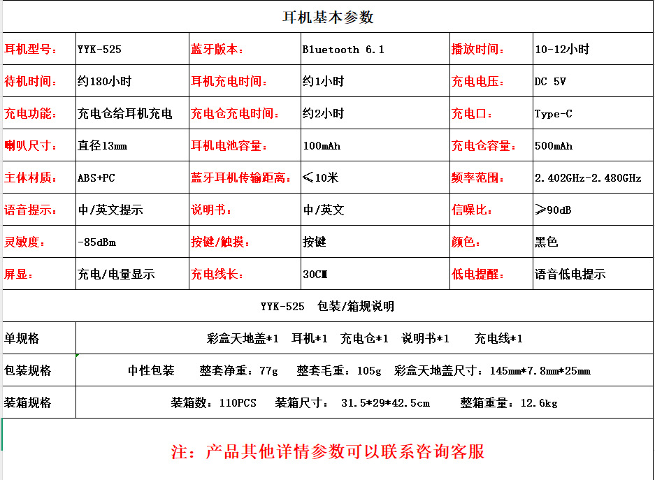 아마존 틱톡 인기상품 AI 번역 기능이 있는 YYK525 귀걸이형 블루투스 이어폰 방수 싱글 이어 비즈니스 무선 이어폰