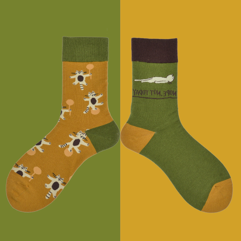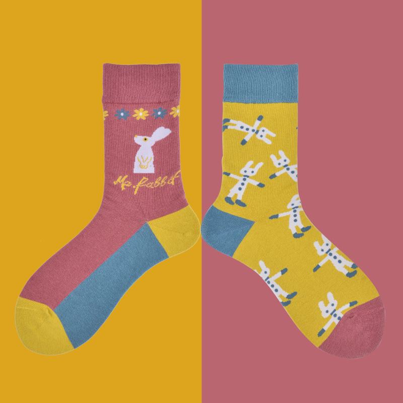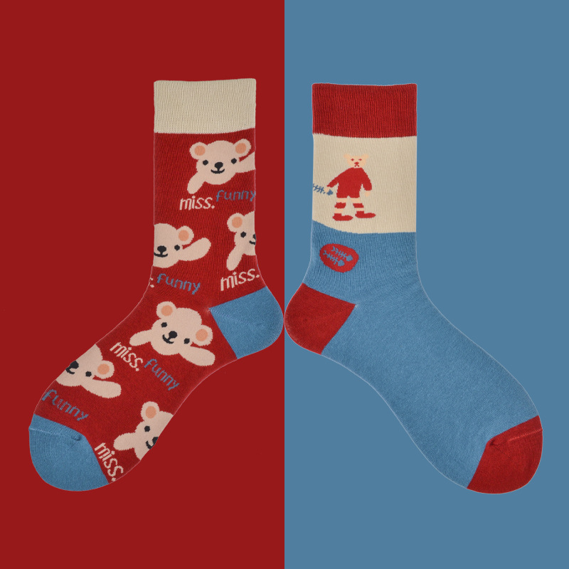 빗질면 비대칭 AB 양말 유행 높은 튜브 연인 양말 만화 곰 복고풍 작은 꽃 양말 여성면 도매스토어 가기