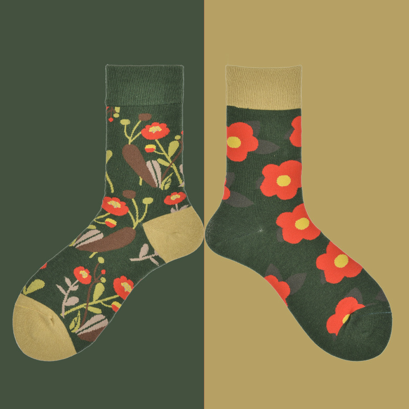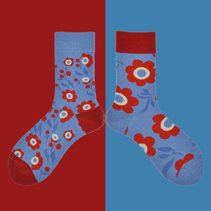 빗질면 비대칭 AB 양말 유행 높은 튜브 연인 양말 만화 곰 복고풍 작은 꽃 양말 여성면 도매
