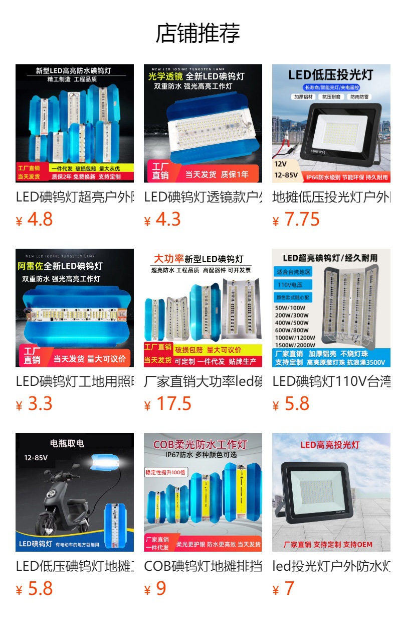 LED 요오드 텅스텐 램프 하이라이트 방수 투광 조명 마구간 블록 야간 시장 사이트 조명 옥외 강한 빛 투광 조명스토어 가기