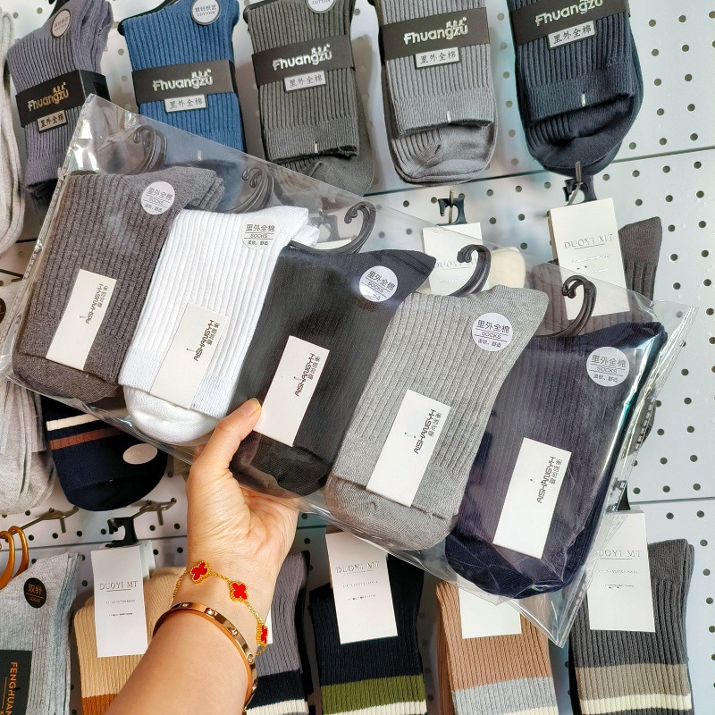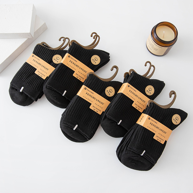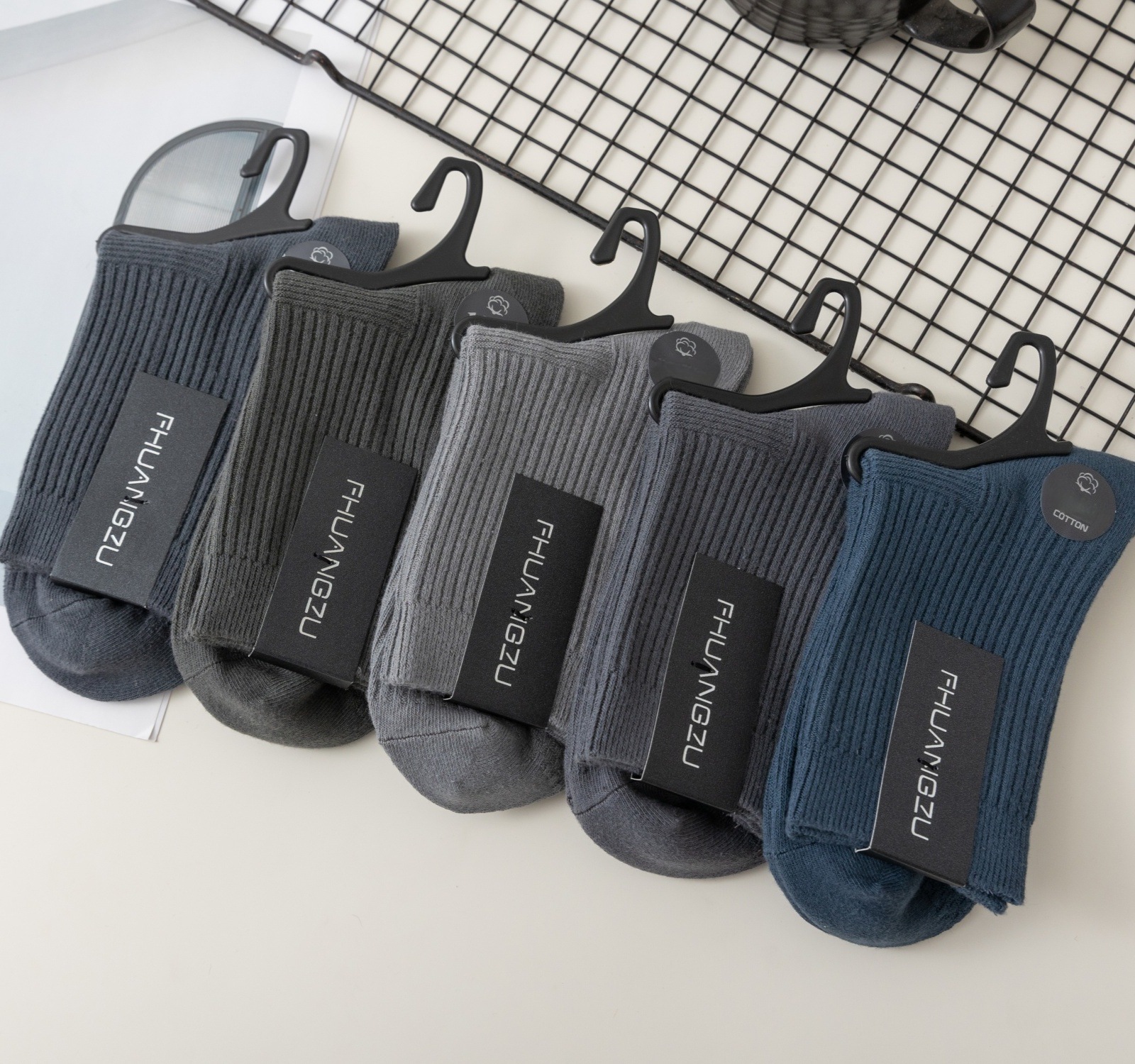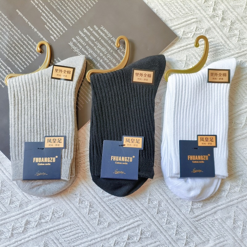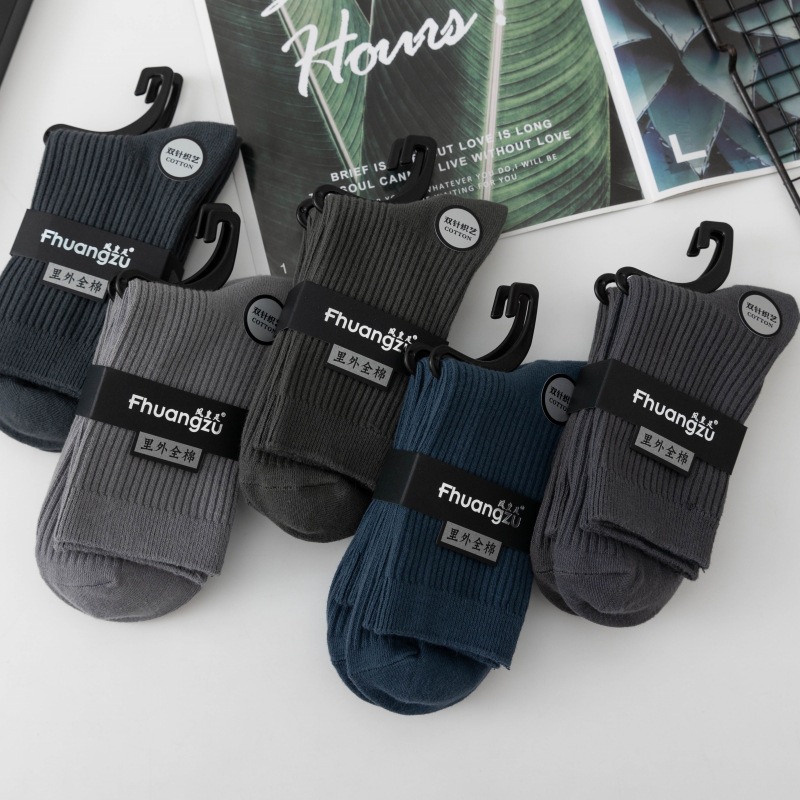 Zhuji 양말 남자 단색 일본 이중 바늘 튜브 양말 가을과 겨울 새로운 두꺼운 빗질면 비즈니스 남성 양말 도매스토어 가기