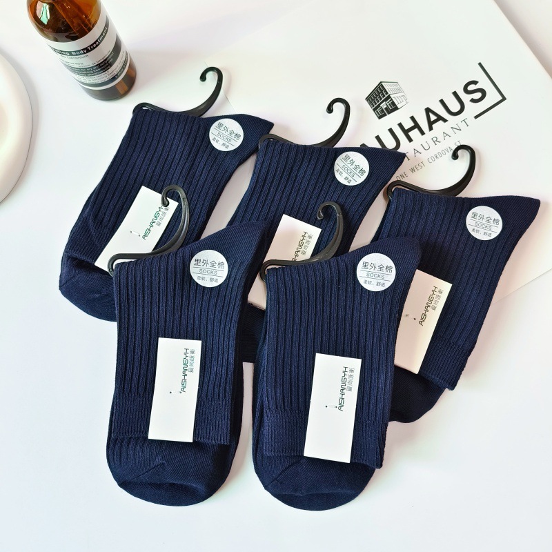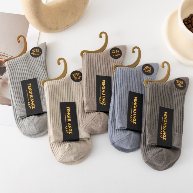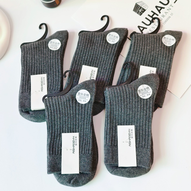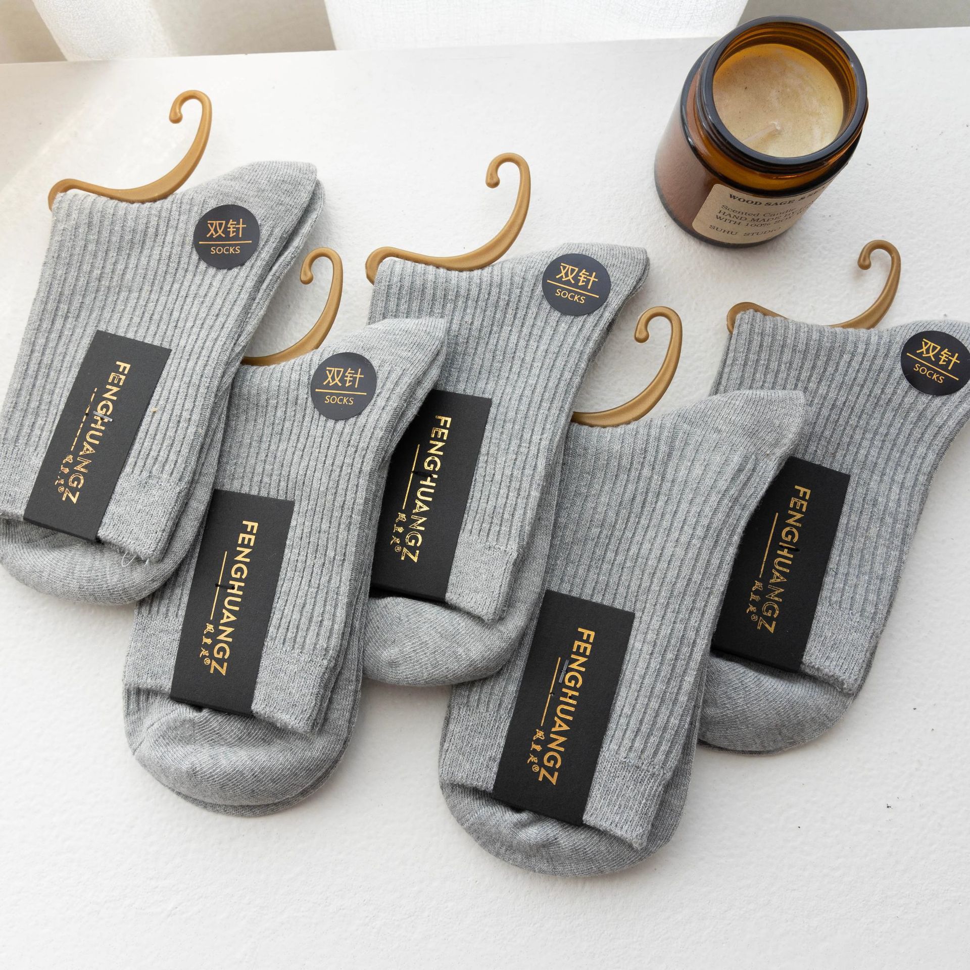 Zhuji 양말 남자 단색 일본 이중 바늘 튜브 양말 가을과 겨울 새로운 두꺼운 빗질면 비즈니스 남성 양말 도매