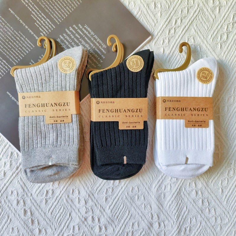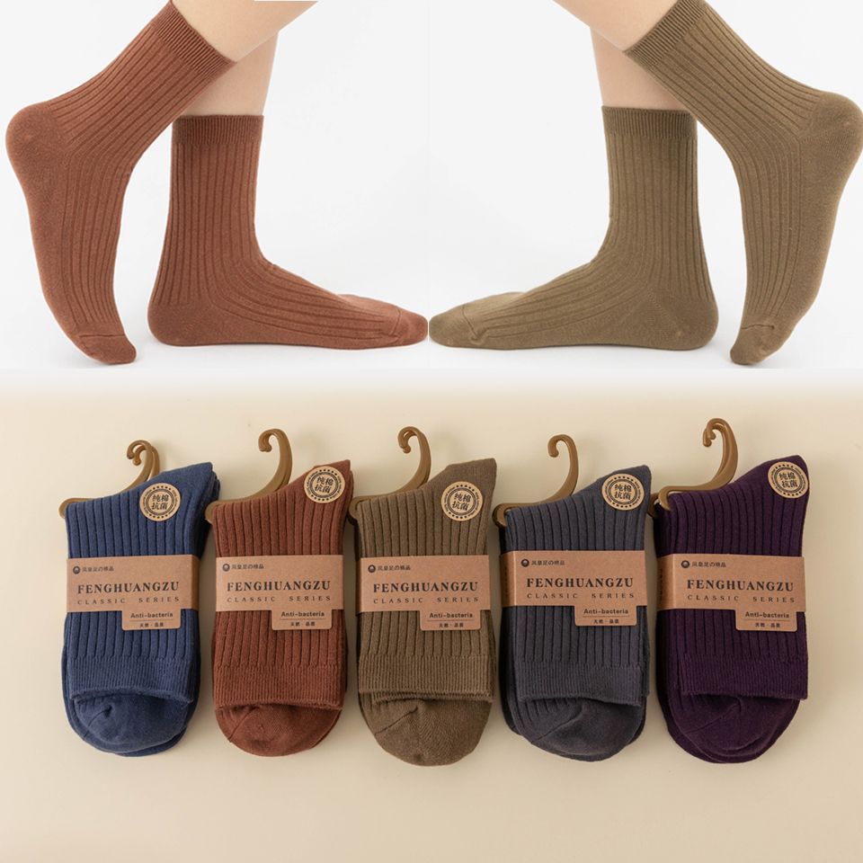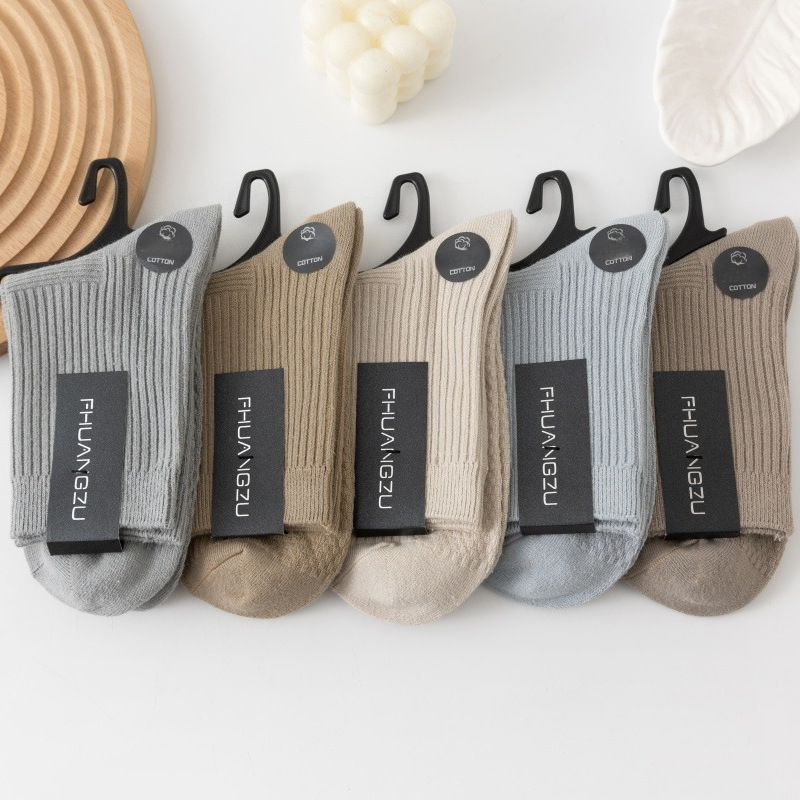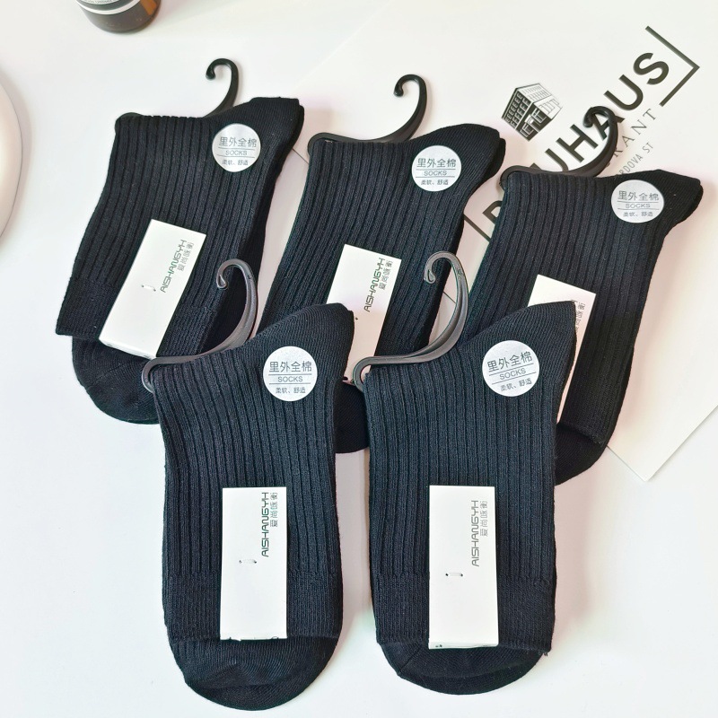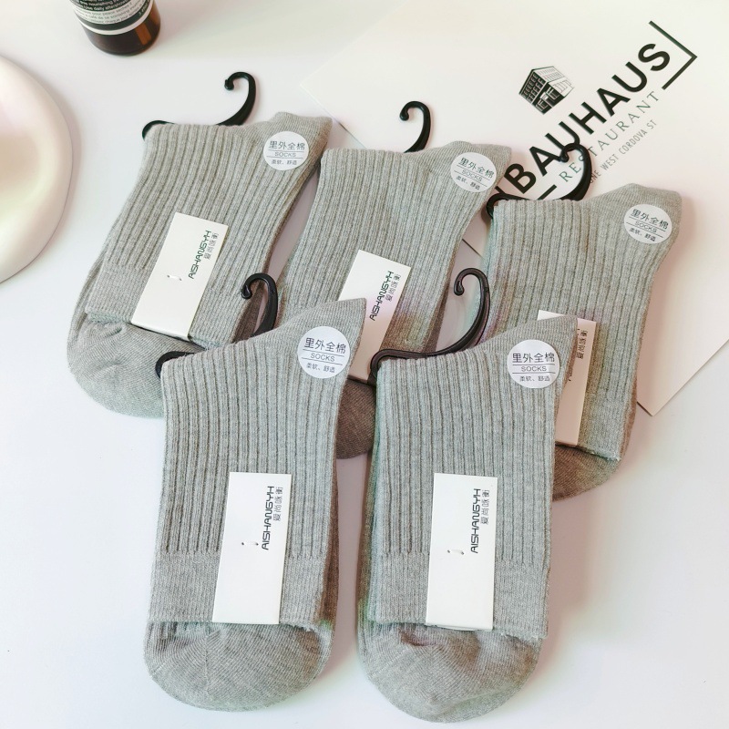 Zhuji 양말 남자 단색 일본 이중 바늘 튜브 양말 가을과 겨울 새로운 두꺼운 빗질면 비즈니스 남성 양말 도매