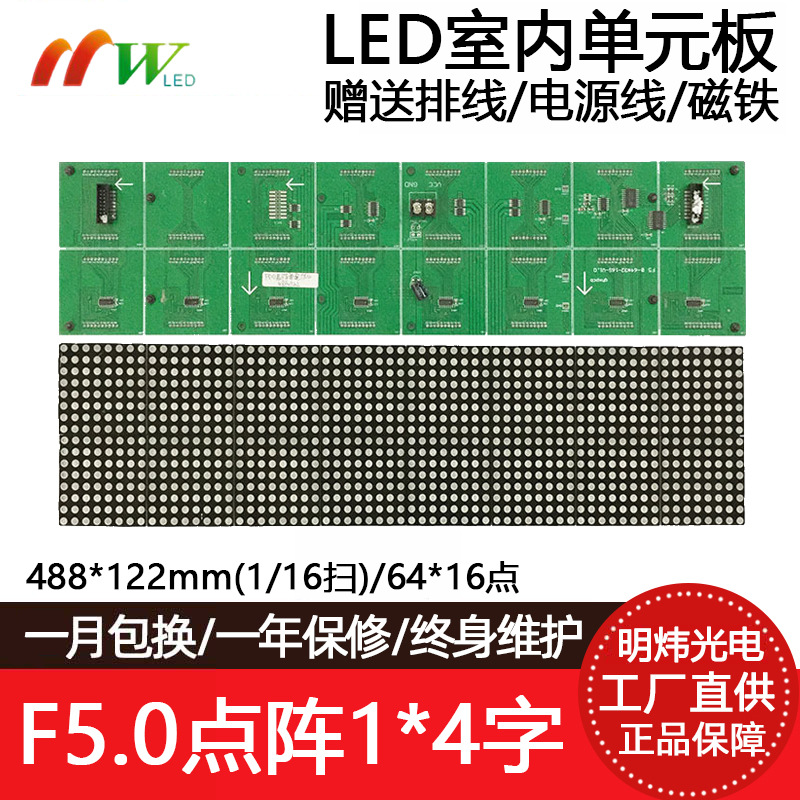 F5.0 도트 매트릭스 64*16 도트 유닛 보드 P7.62 실내 단일 및 이중 색상 빨간색과 녹색 LED 디스플레이 모듈 488*122