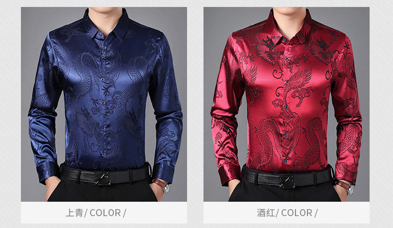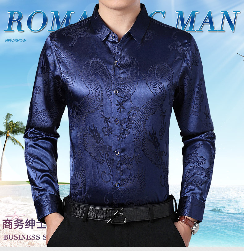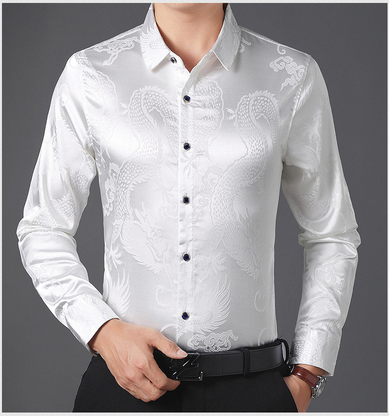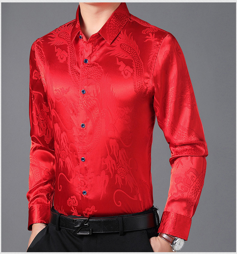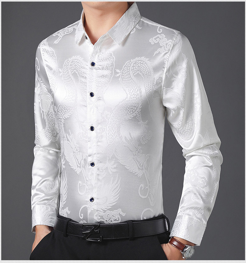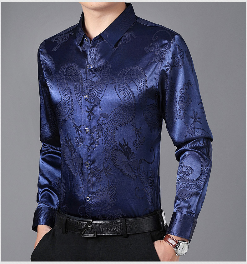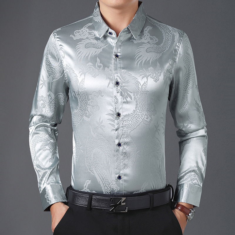 2026년 외국 무역 자카드 긴팔 남성 셔츠, 복고풍 용 문양 중국풍 캐주얼 중년 남성 셔츠, 봄 여름 남성복