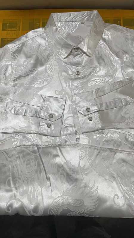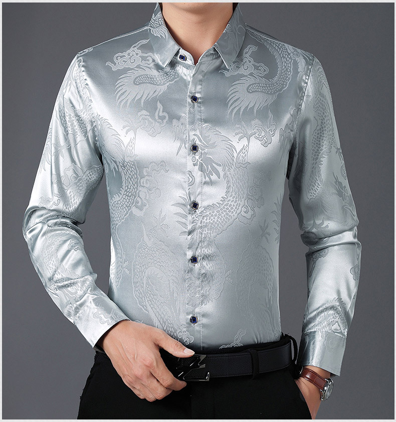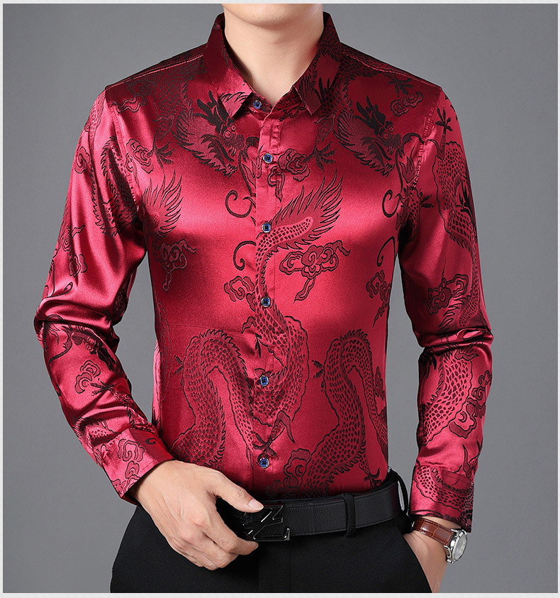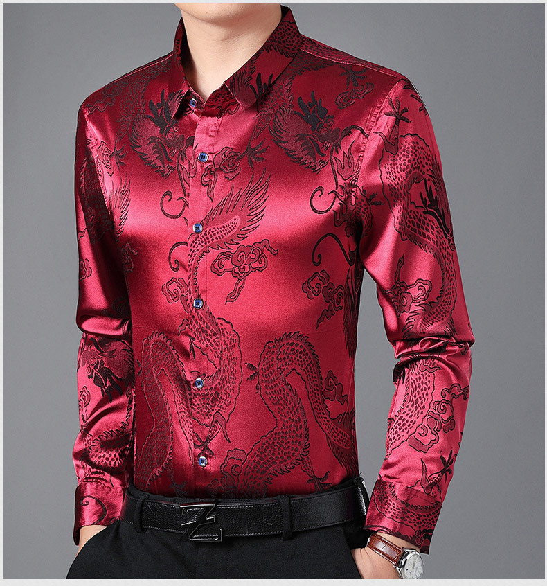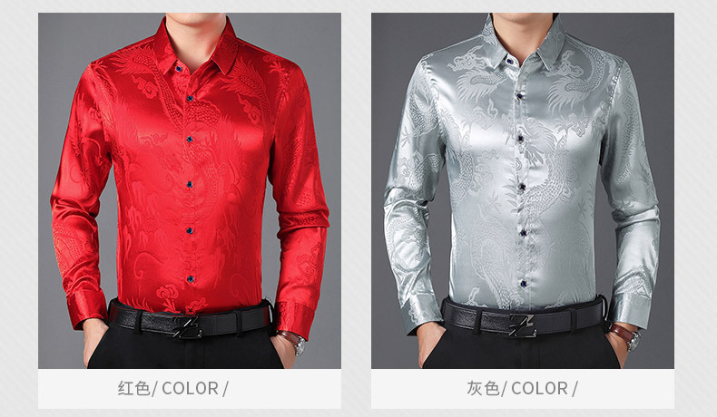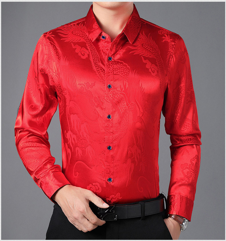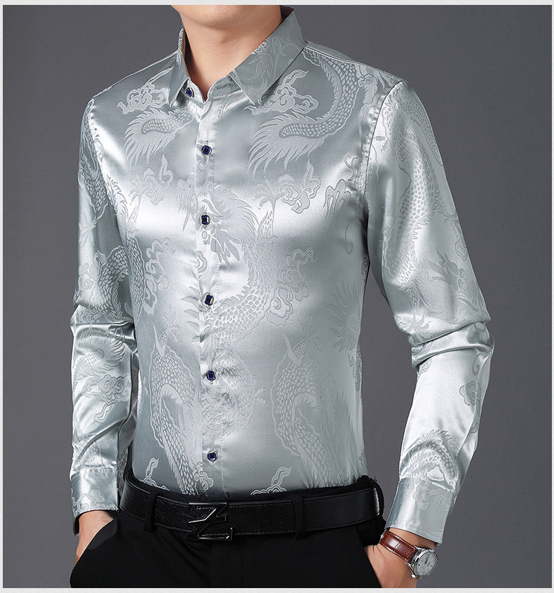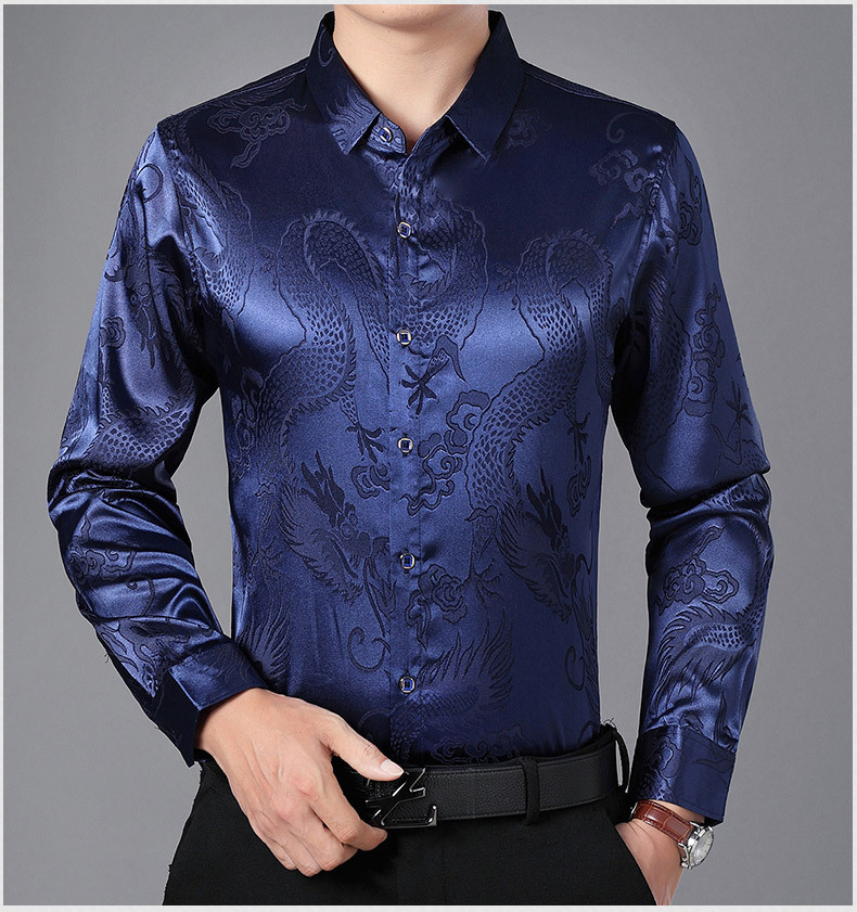 2026년 외국 무역 자카드 긴팔 남성 셔츠, 복고풍 용 문양 중국풍 캐주얼 중년 남성 셔츠, 봄 여름 남성복