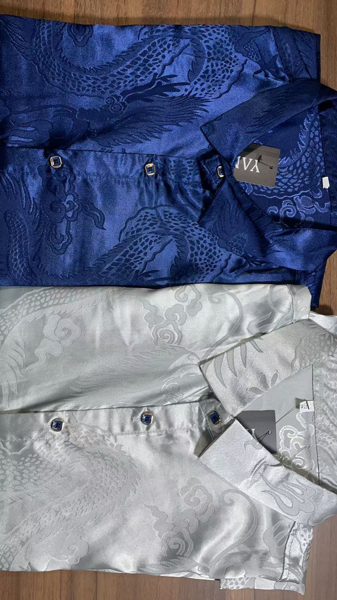 2026년 외국 무역 자카드 긴팔 남성 셔츠, 복고풍 용 문양 중국풍 캐주얼 중년 남성 셔츠, 봄 여름 남성복스토어 가기