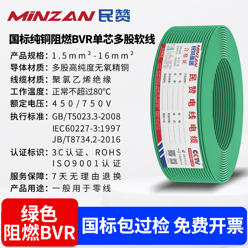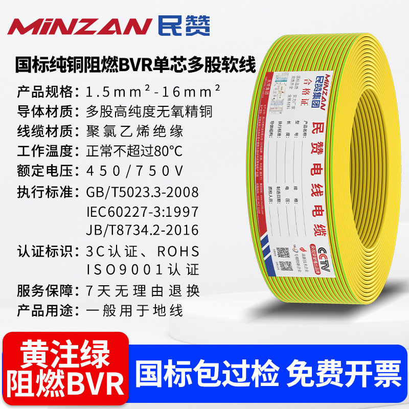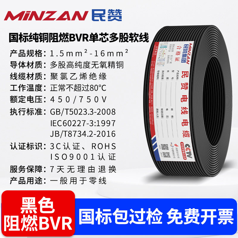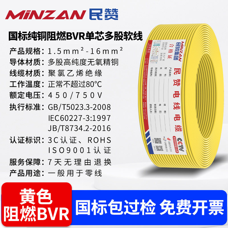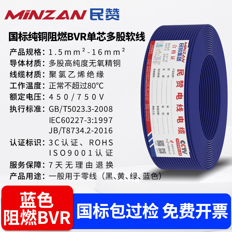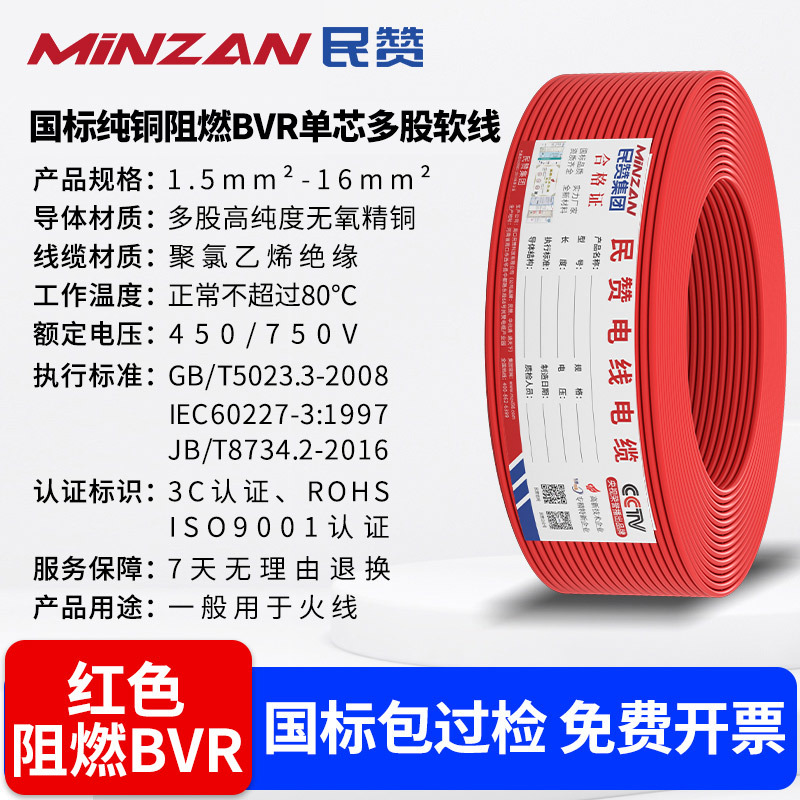 국가표준 가정용 전선 BVR 절연 난연 구리심 케이블 1.5/2.5/4/6 평방미터 단선 다심 연선 가정용스토어 가기