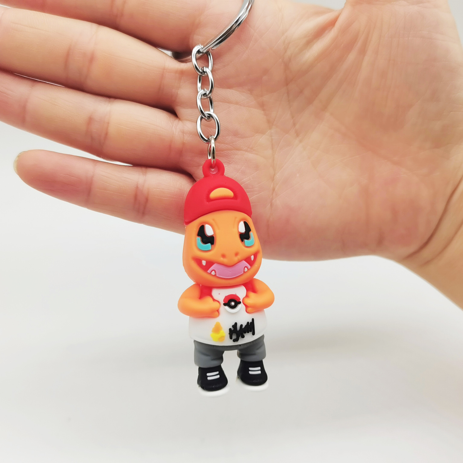 새로운 만화 엘프 아기 열쇠 고리 PVC 가방 펜던트 피카츄 작은 불 용 오리 선물 도매스토어 가기