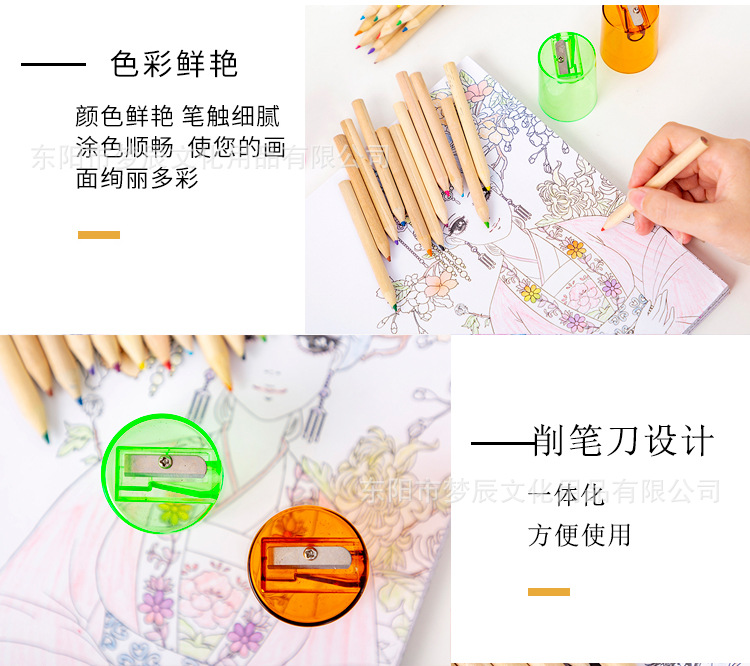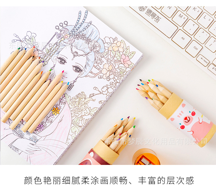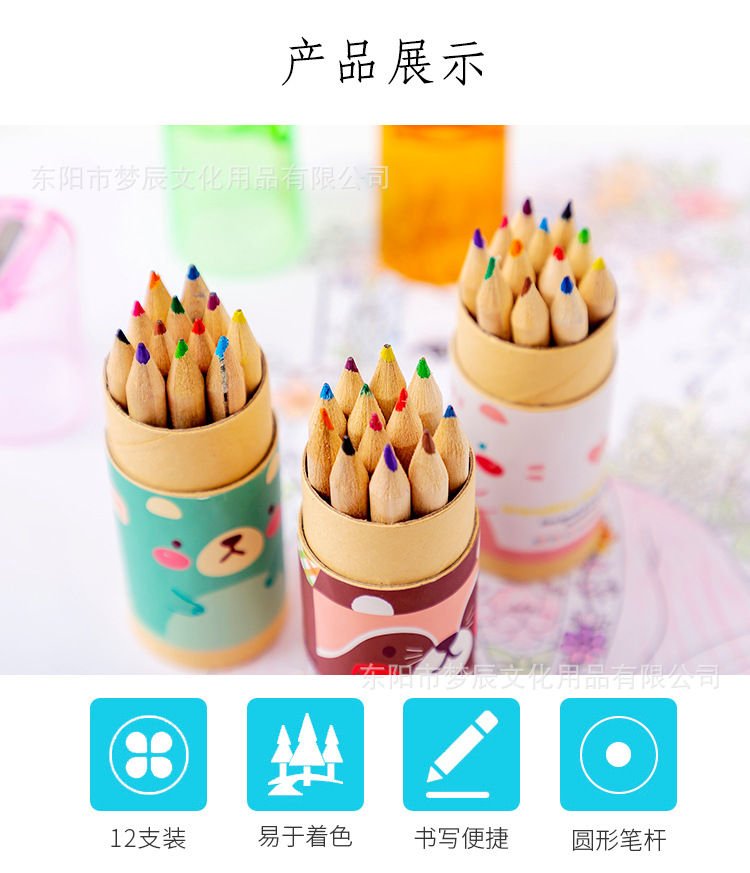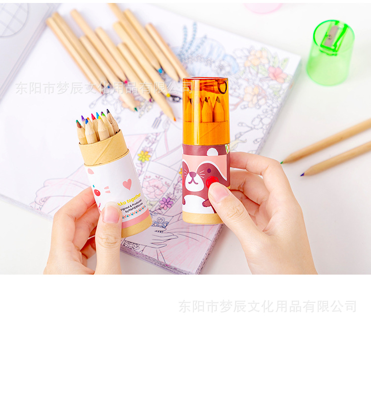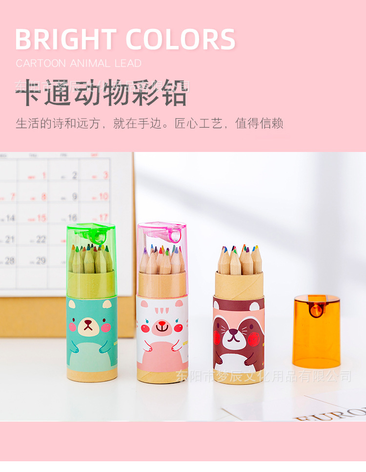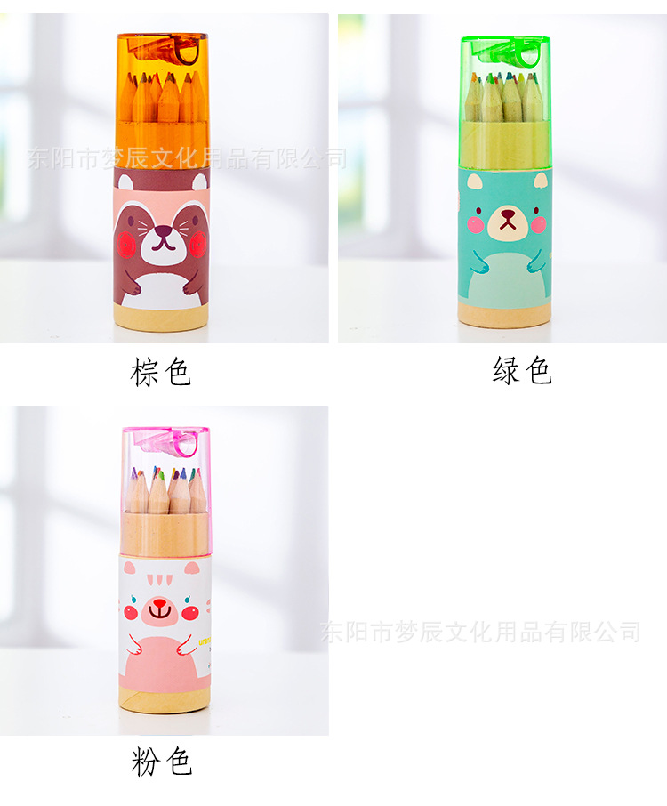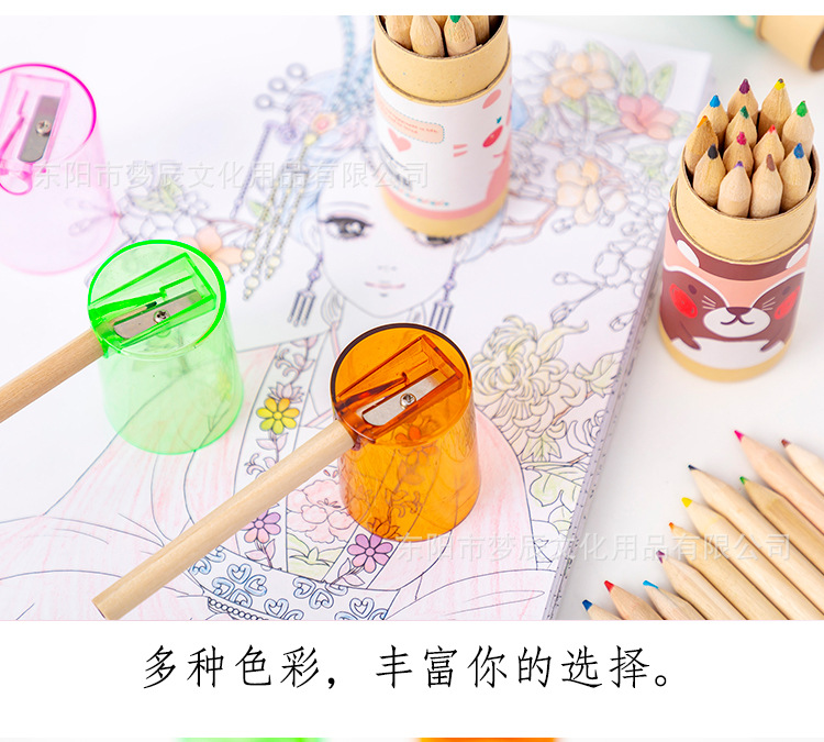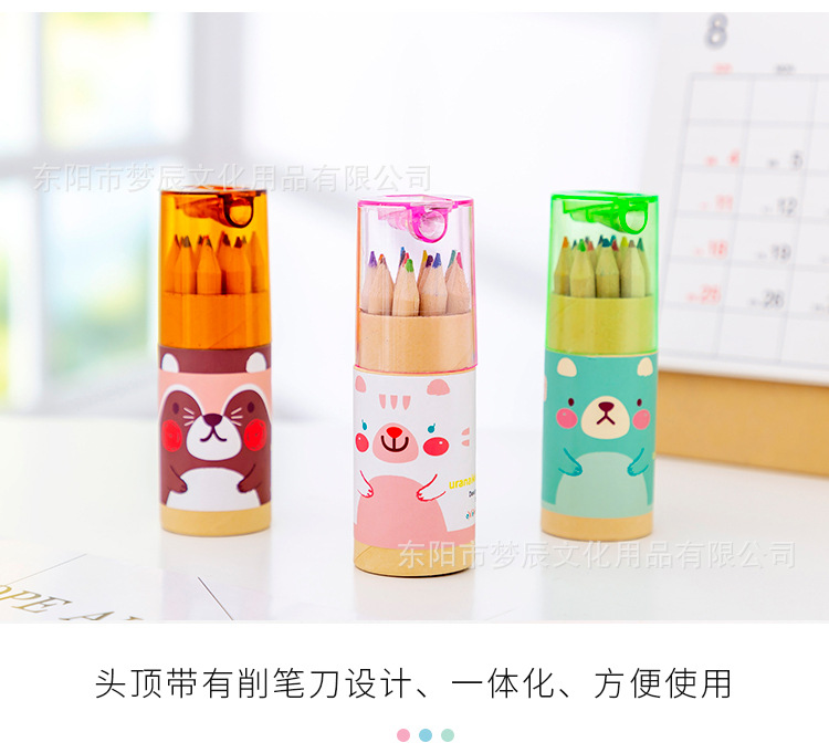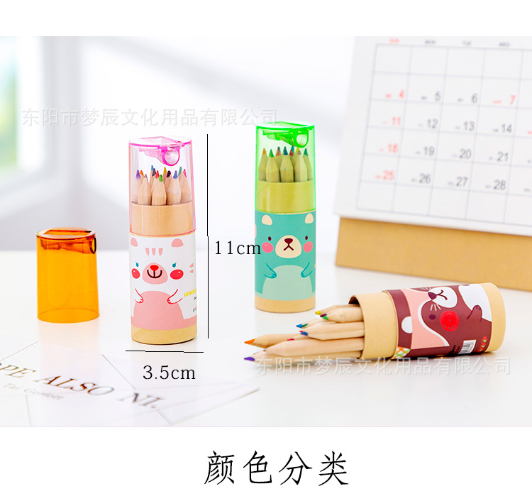 귀여운 만화 색연필 세트 초등학생 상품 12 색 나무 색연필 연필 깎이 유치원 선물