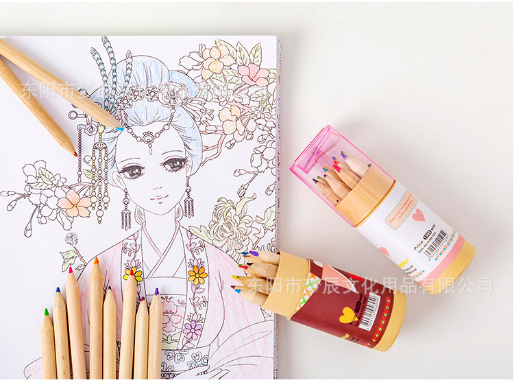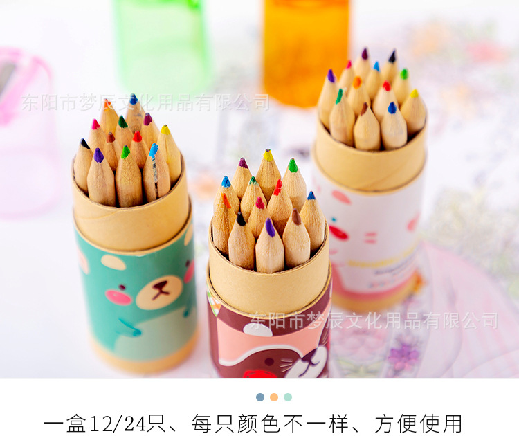 귀여운 만화 색연필 세트 초등학생 상품 12 색 나무 색연필 연필 깎이 유치원 선물스토어 가기