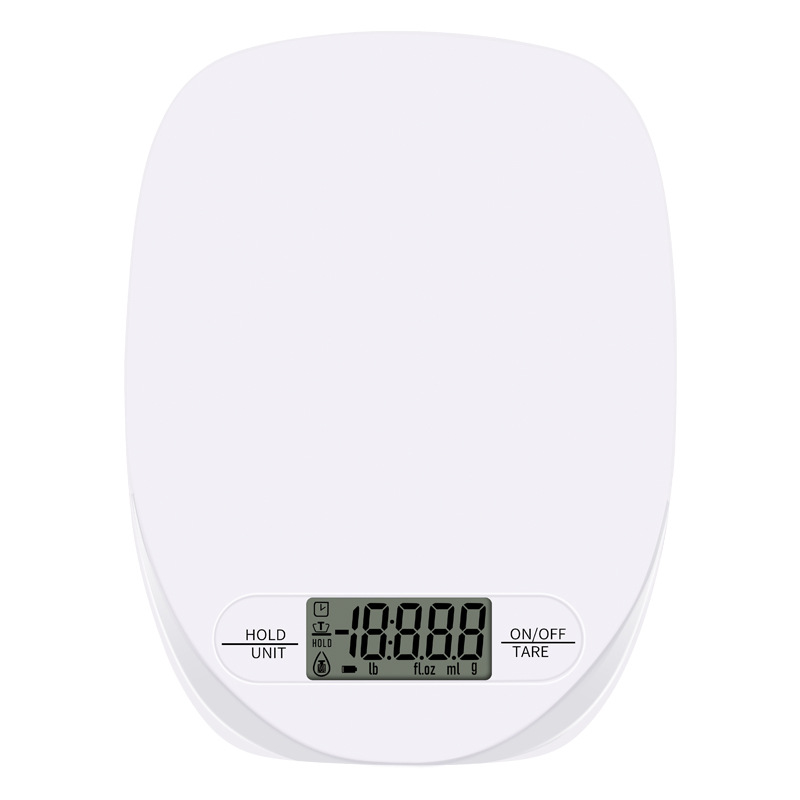 1.最大称重:5kg 2.分度值:d=1g 3.重量:130g 4.产品单位:g,oz,fl.oz,water ml, lb:oz 5.显示:LCD4位液晶显示 蓝色背光 6.4个高精度传感器 7.按键开机,120S关机;自动追零 8.超重,低电量和出错称重会显示 9.材料:ABS塑料件 10.电源:纽扣电池 11.产品证书:CE ROHS 12.工厂验厂:沃尔玛,BSCI,Target