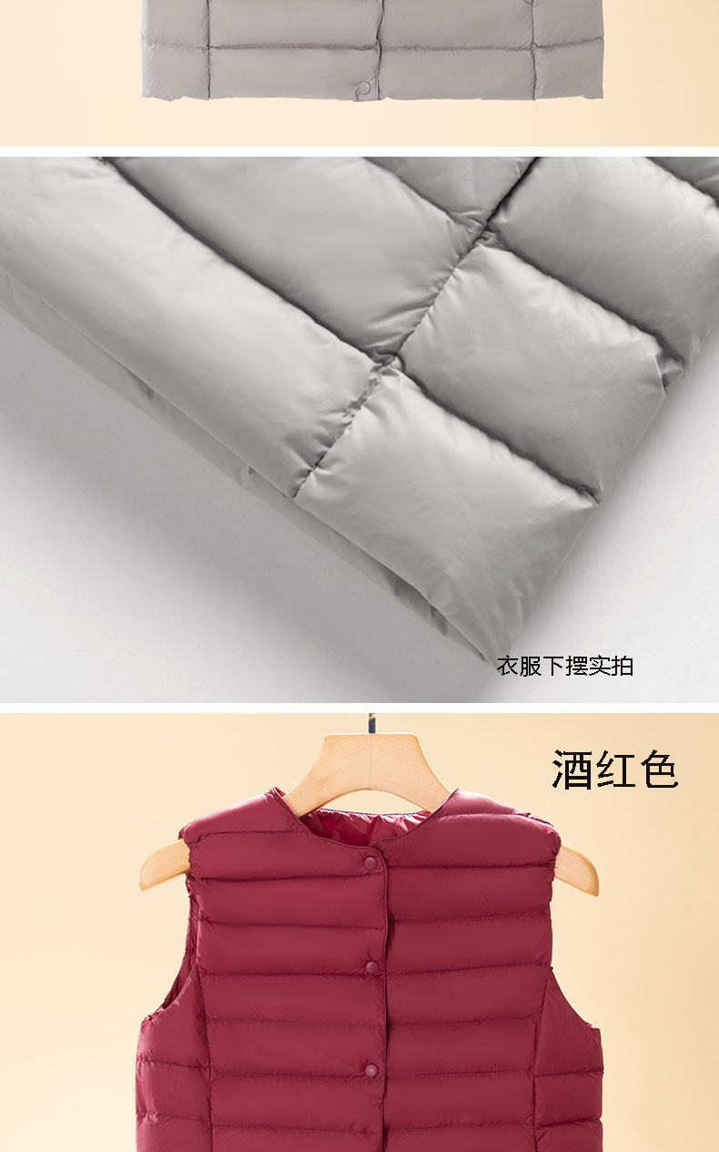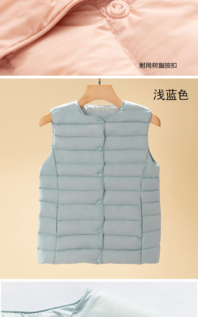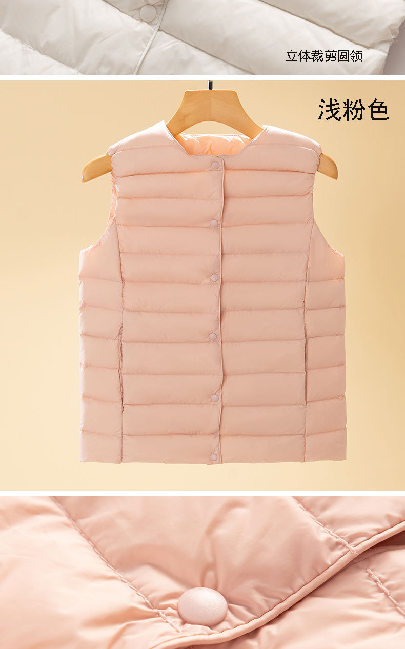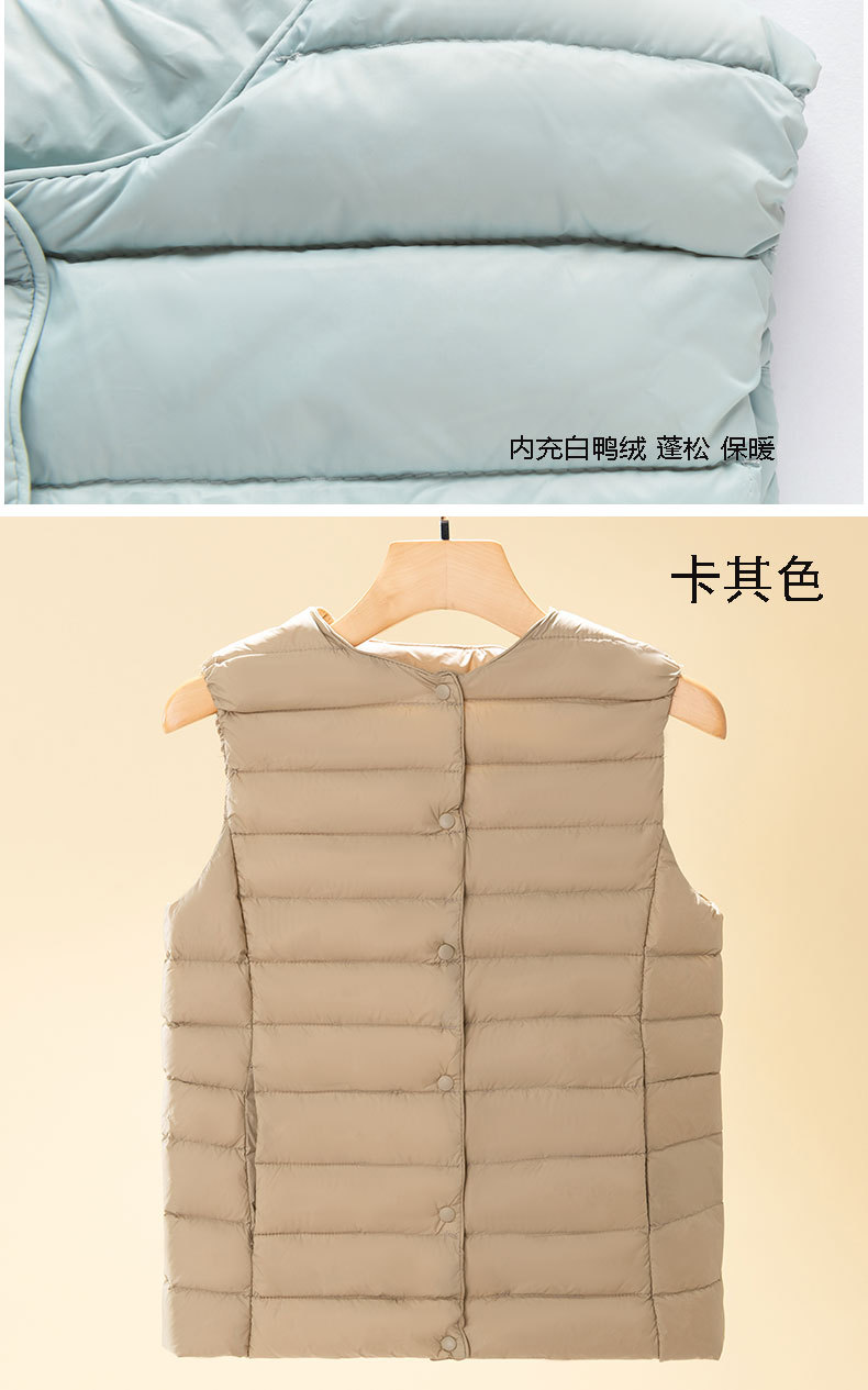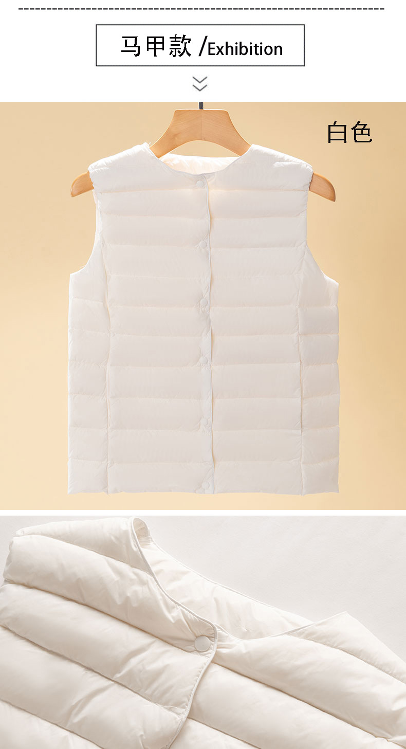 2024 가을/겨울 라이트 다운 재킷 여성 양복 조끼 시즌 새로운 라운드 넥 라이너 양복 조끼 화이트 오리 다운 플러스 사이즈 코트