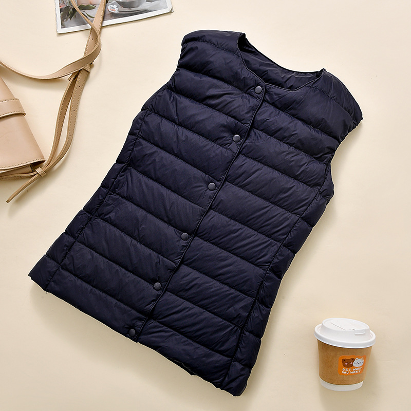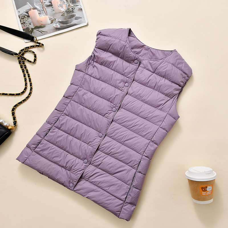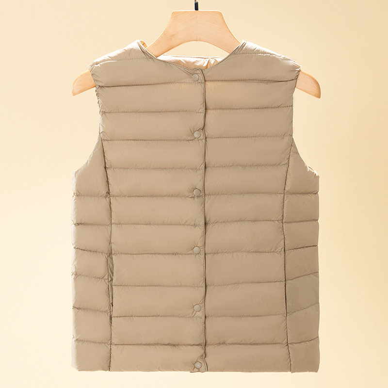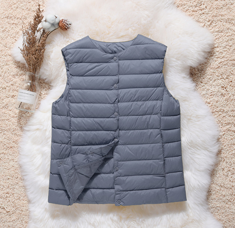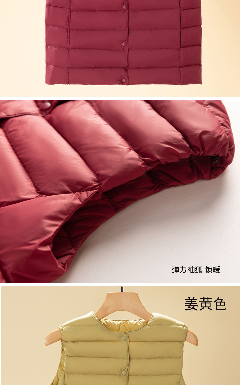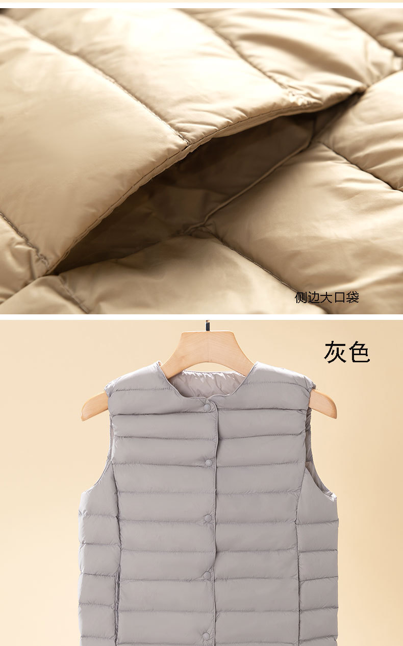 2024 가을/겨울 라이트 다운 재킷 여성 양복 조끼 시즌 새로운 라운드 넥 라이너 양복 조끼 화이트 오리 다운 플러스 사이즈 코트