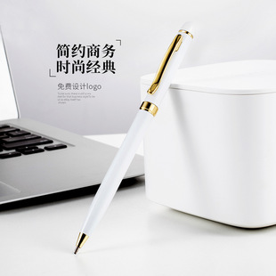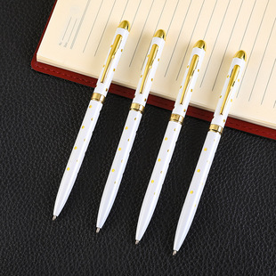 白色圆珠笔旋转金属圆珠笔可印logo油性礼品笔带圆点小高士笔跨境