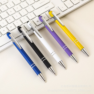 按动触屏圆珠笔印刷logo礼品笔电容中油笔广告橡胶触控金属圆珠笔