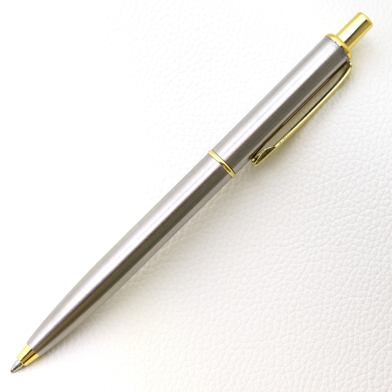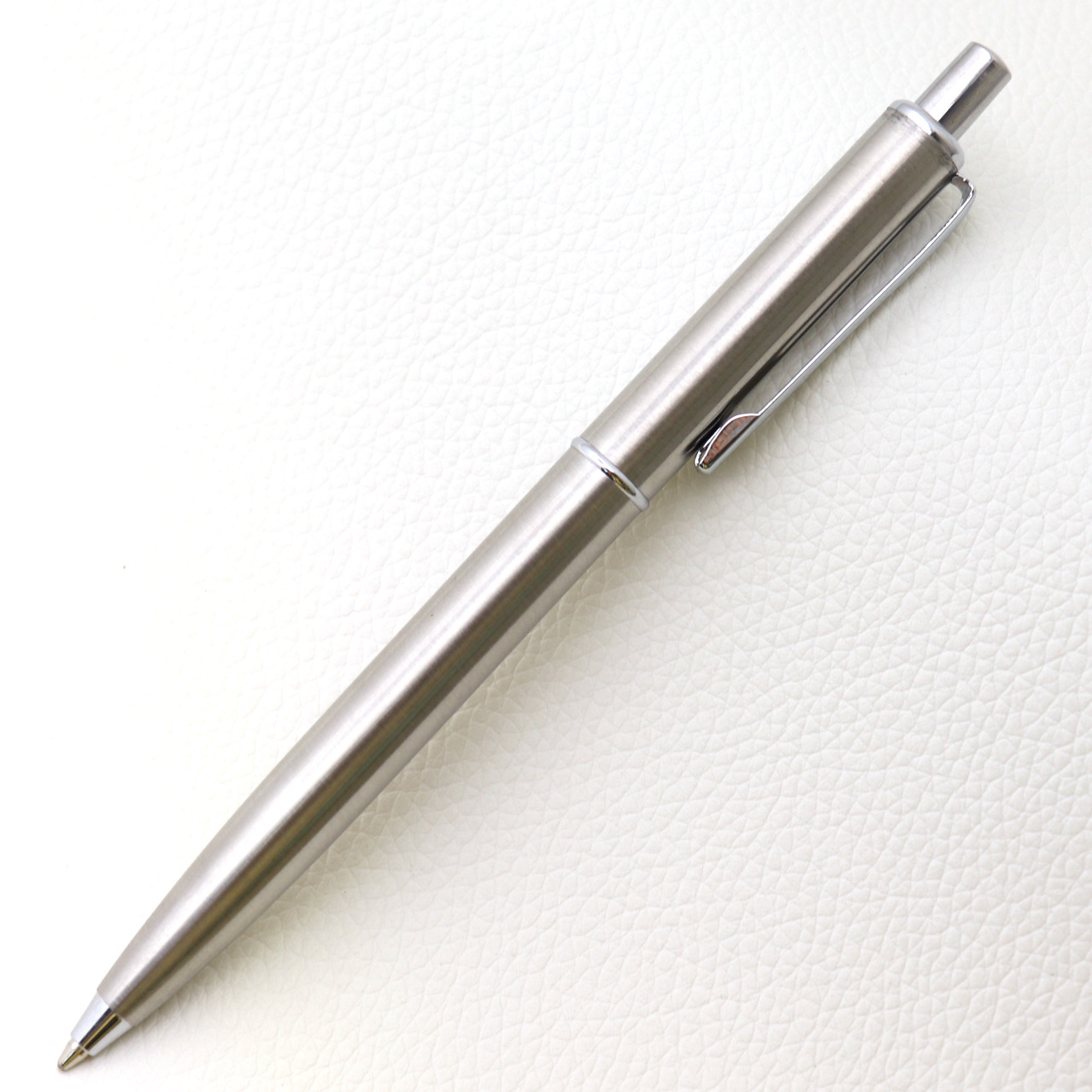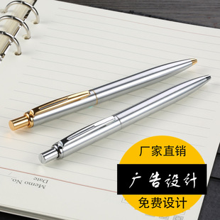 按动金属圆珠笔钢色不锈钢中油笔激光logo广告礼品笔现货圆珠笔
