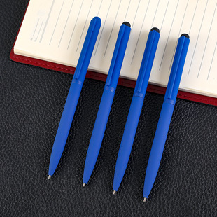 蓝色金属圆珠笔触屏中油笔刻logo礼品笔商务专定圆珠笔旋转高士笔